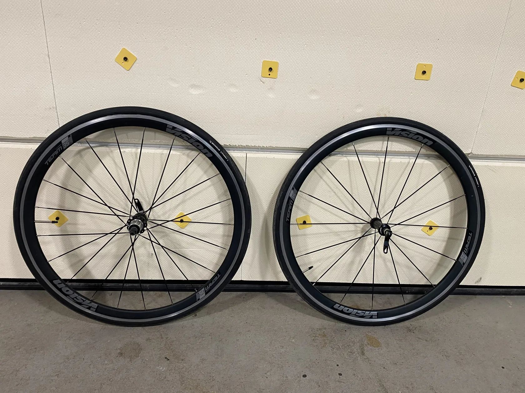 Prodám hliníková kola vision team 35 comp sl s rychloupínáky. Na kole ořech na shimano 11st a skoro nejeté pláště michelin 700x25. Kola nehází a brzdná plocha je ok.