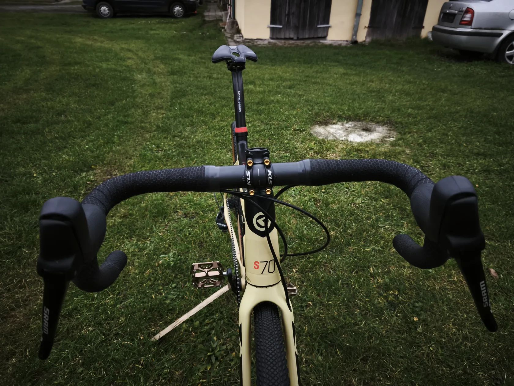 Gravelové kolo Kellys Soot 70. Spolehlivý gravel. V dobrém stavu. Hliníkový rám, karbonová vidlice i sedlovka. Spolehlivé řazení Sram Apex. Na kolo sem dával nový převodník 40z původně tam byl 44(přidávám ke kolu). Kolo je na bezdušich. Zánovní pláště Tufo Thundero 700*44C