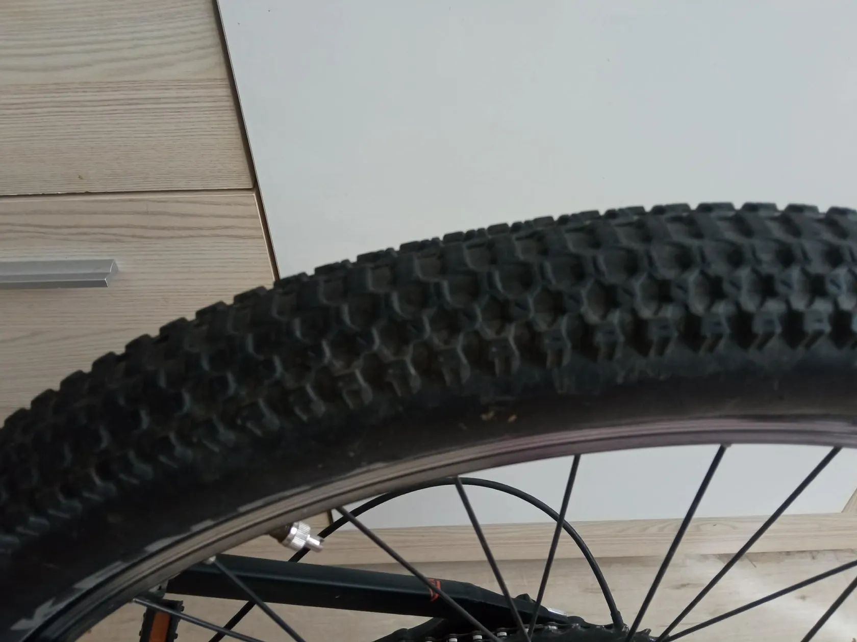 Hmotnost cca 10,9 kg – na dětské horské kolo poměrně rozumná