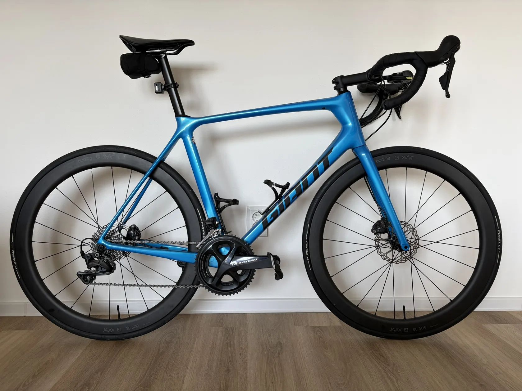 Proti původní specifikaci upgradováno: kliky Ultegra, karbonové výplety Javax, karbonové řidítka ARC8, sedlo Selle Italia, kotouče Galfer.