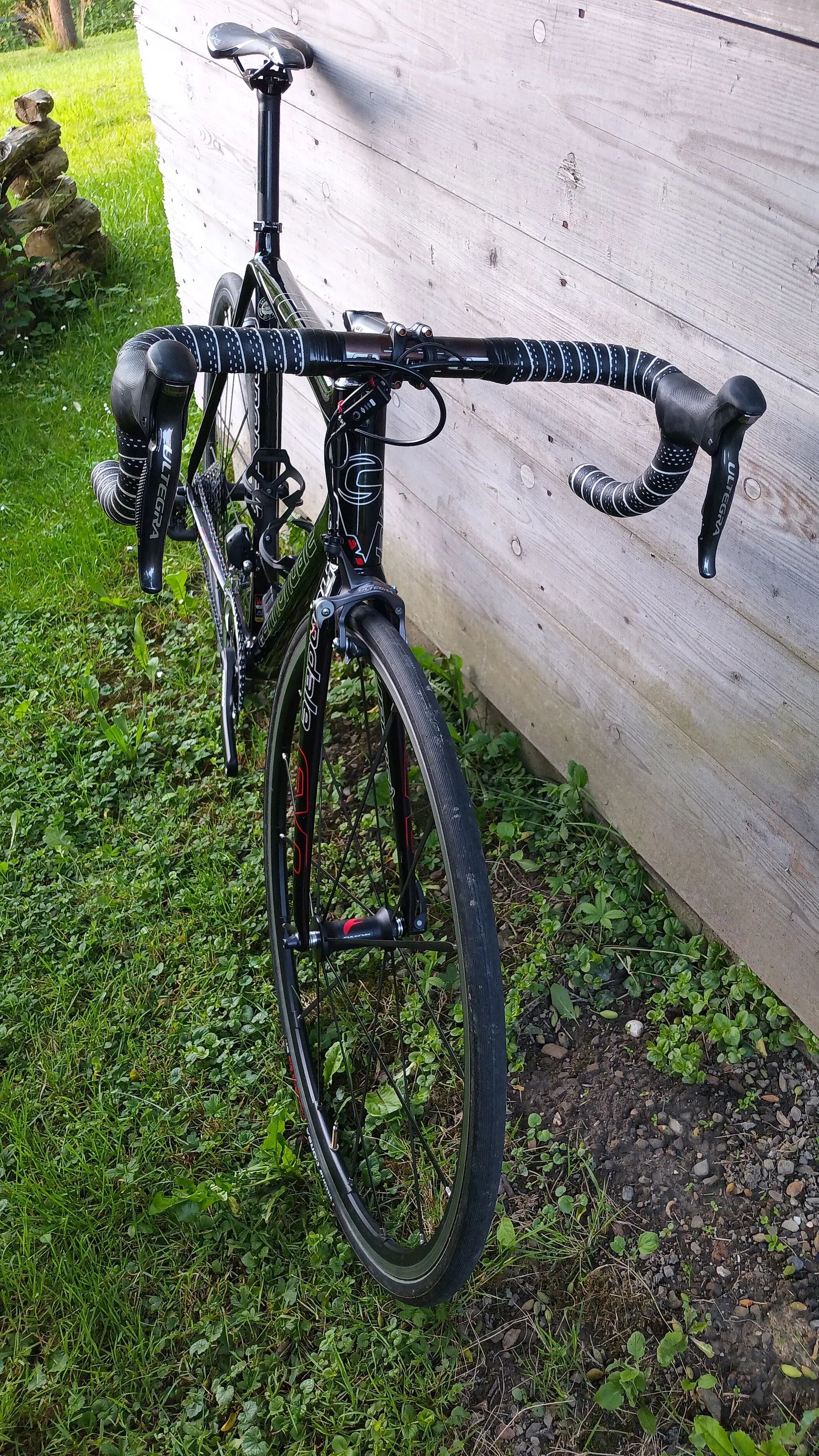 Karbonové silniční kolo v perfektním stavu. Plně funkční. Žádné větší šrámy. Elektrické řazení,kola Fulcrum. Velikost rámu 58cm. Váha bez pedálů 7,4 kg. Doklady, nabíječka