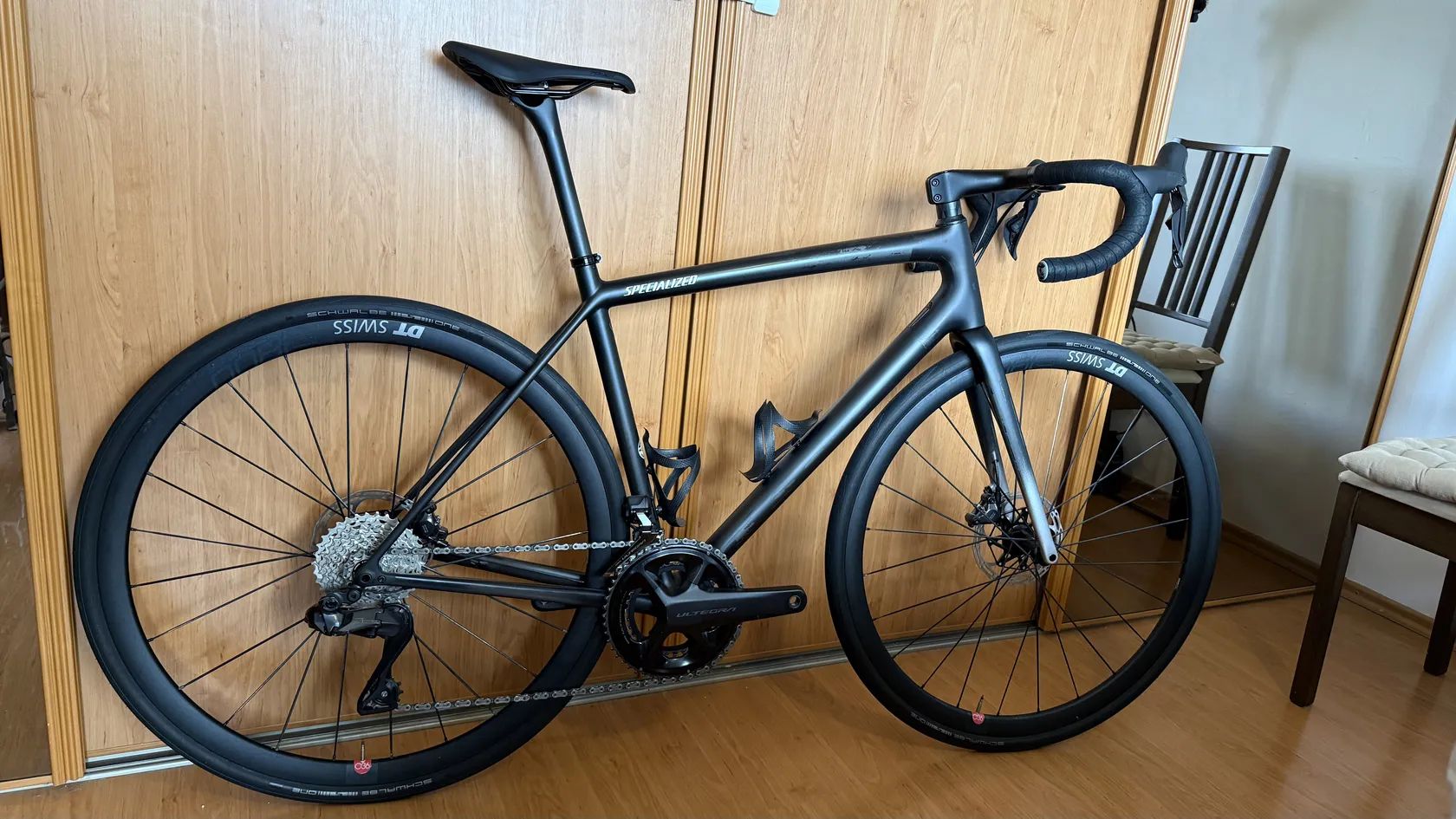 Predám dva roky jazdený Specialized Aethos, vel. 56 (nastavený na 178cm) v krásnej čiernej farbe s priehľadným karbónom. Bike je v 100% technickom stave, pravidelne som ho servisoval a vylepšoval. Je to ľahučký vrchársky bike, ktorý sa nestratí ani na rovine. Predávam len z dôvodu prechodu na iný model. Pridám pôvodnú kľuku k powermetru, karbónové držiaky na fľaše, nový držiak na cyklopočítač Roval s príslušenstvom, nabíjací a extra spojovací kábel k Di2 (hodí sa napr. na upgrade pák) a všetky doklady.
