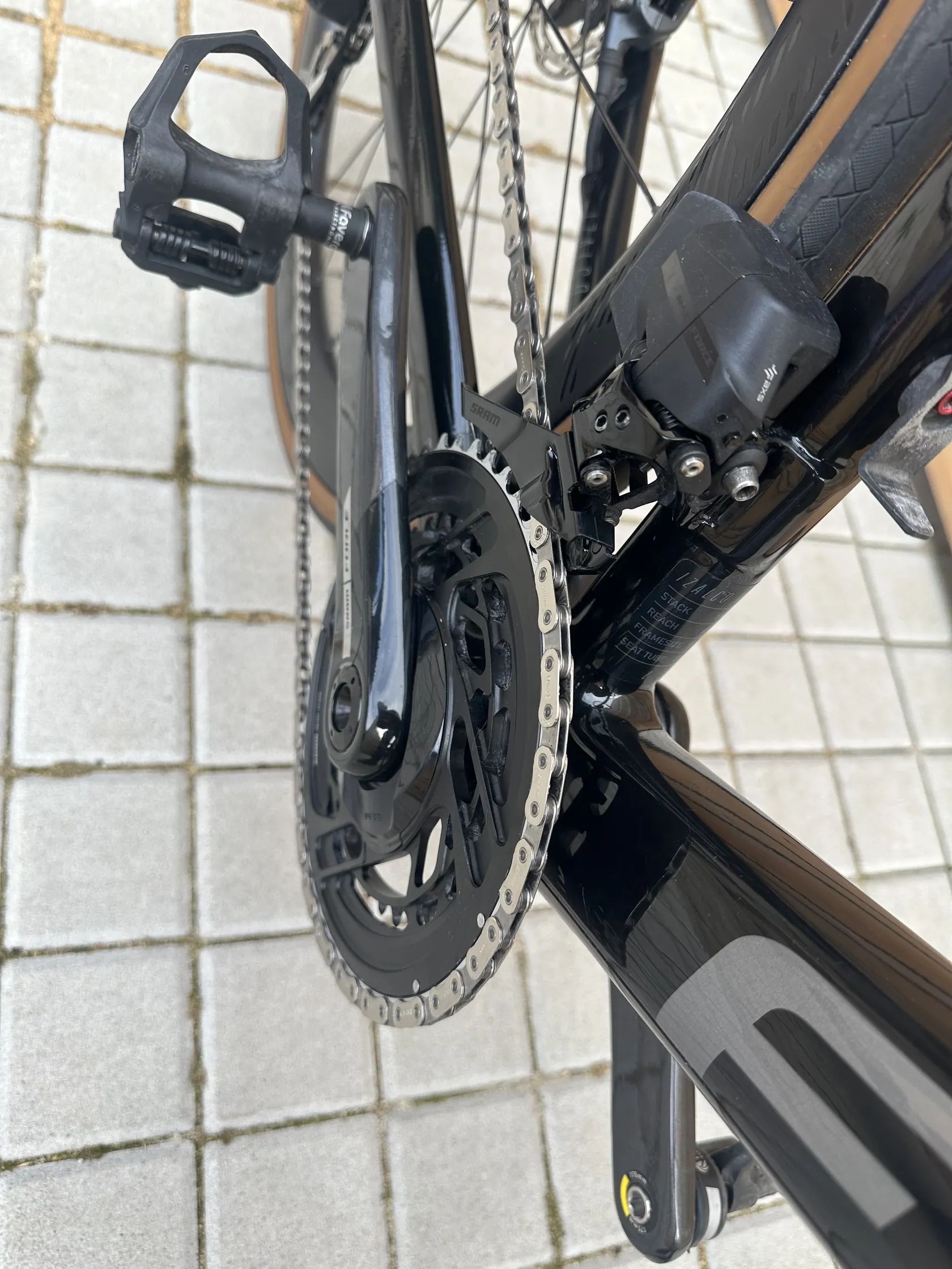 Prodám karbonový Focus Izalco Max, velikost L - 56, sada Sram Force AXS 2x12. Kola na karbonových ráfcích Nextie (nejvyšší řada) 45mm, náboje DT Swiss 240. Pedály Favero Assioma Uno (kufry Look) včetně nabíječky, košíky, držák na garmin - vše součástí. Krček vidlice není zkrácen. Představec FSA 100mm, mám k dispozici i 110mm. Rám olepen ochrannou folií. Na kole je pár provozních oděrek.