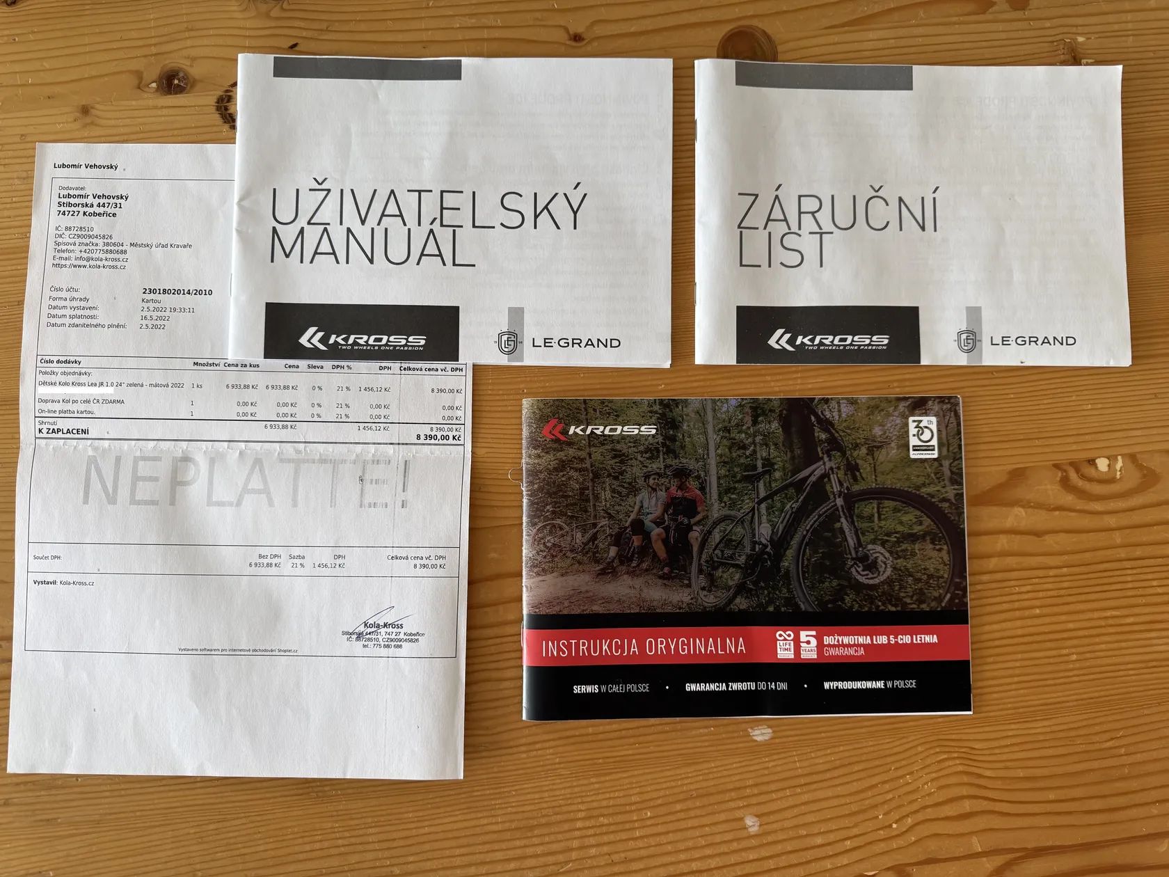 Dobrý den, prodám dětské kolo Kross ve velikosti 24", rám S 12" v krásné zeleně-mátové barvě. Kolo je v TOP stavu, jako nové, skoro neježděné, ideální jako dárek. Stále v záruce! Součástí je i kompletní dokumentace - Záruční list (do 2.5.2027), faktura, dokumentace ke kolu.