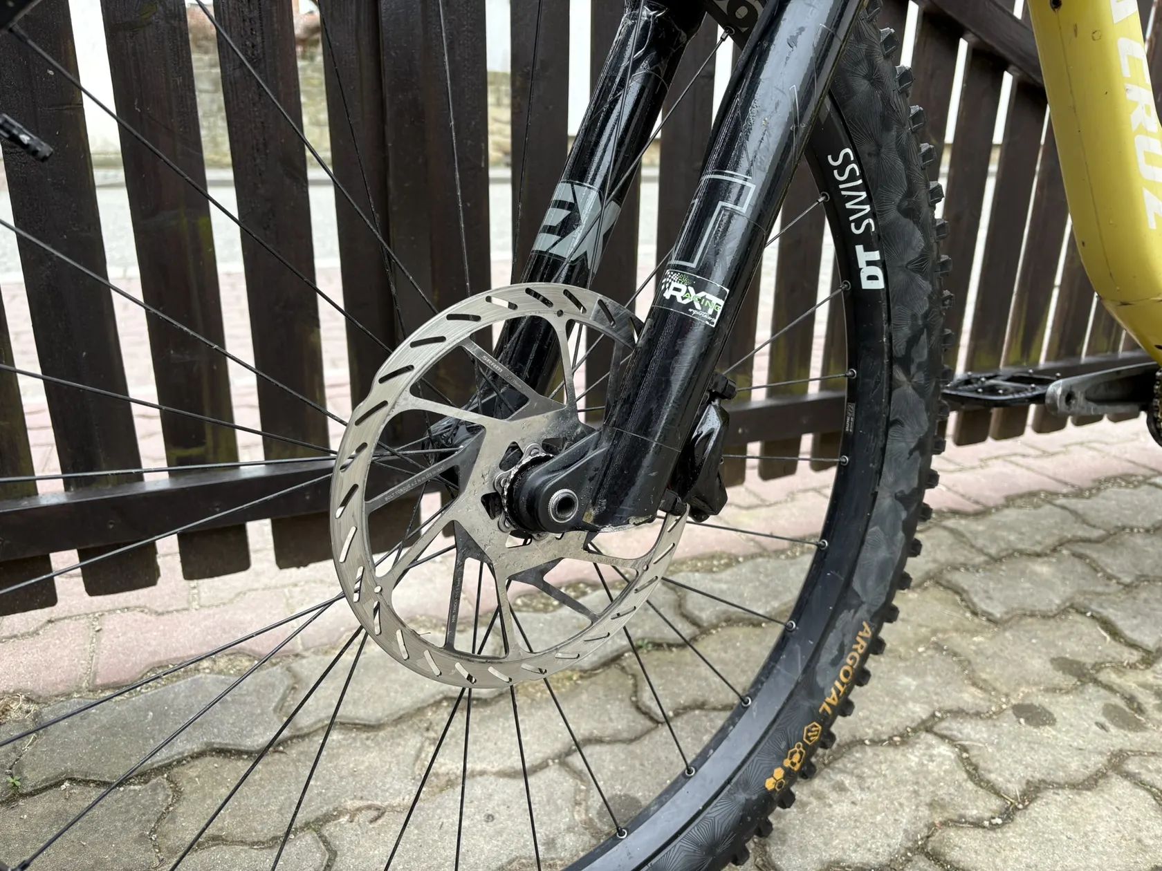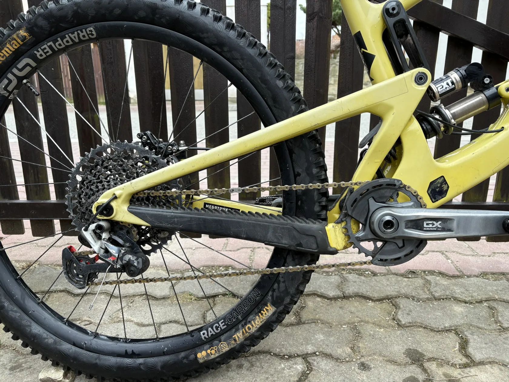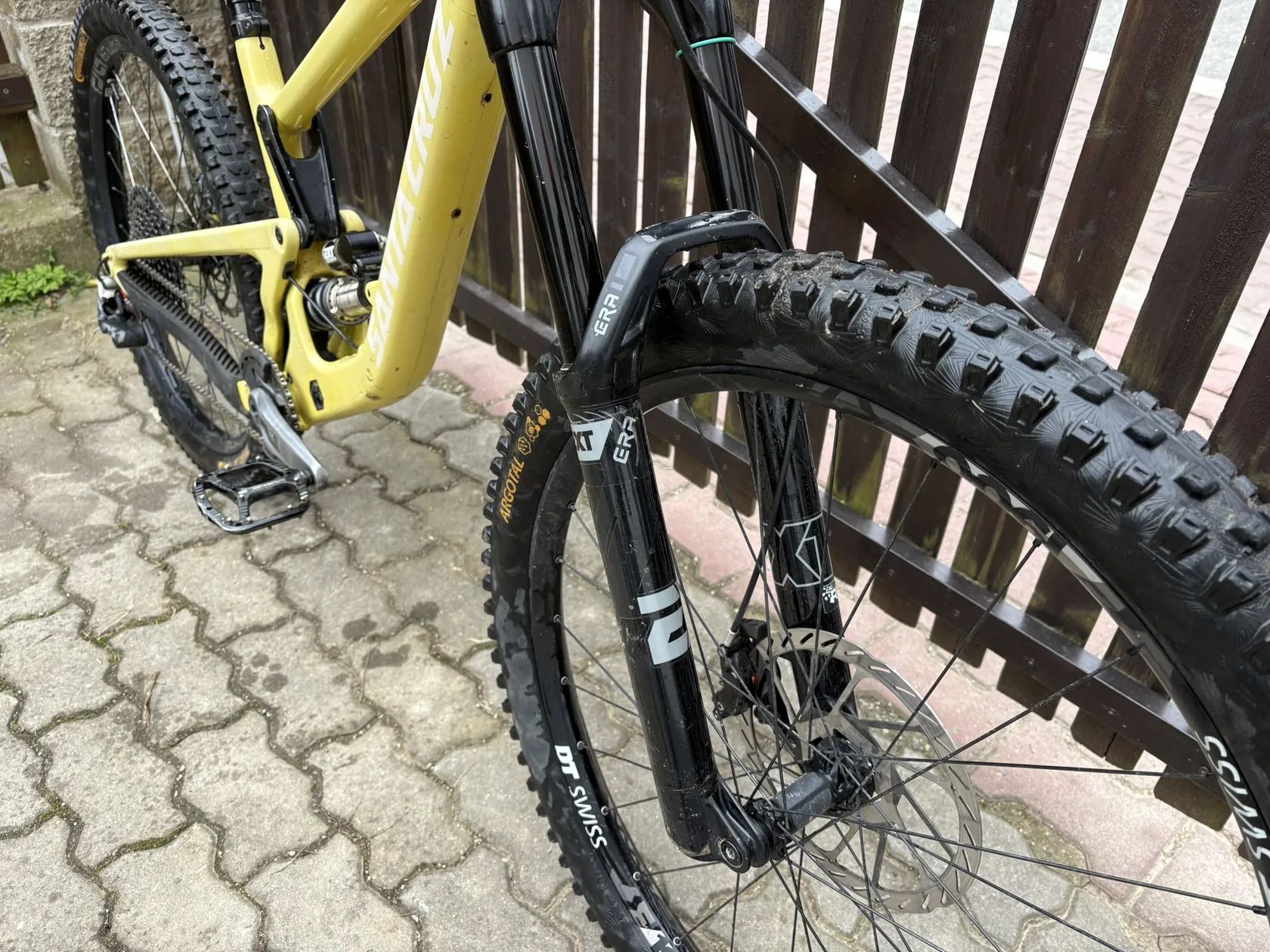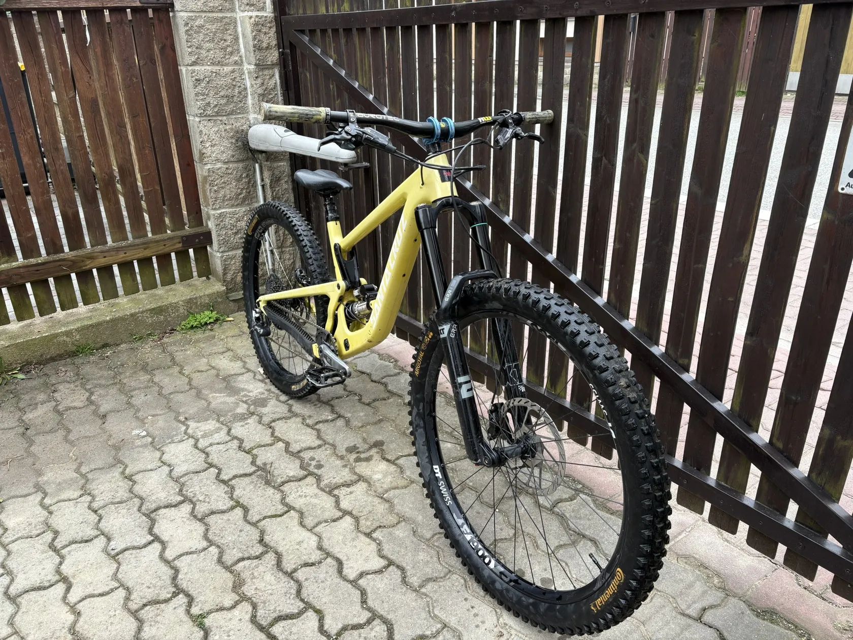 na Kole jsou spickove tlumice od EXT (EXT era vidlice a EXT Storia V3 s pruzinama 425, 450 a 475lb) Kolo je na zdvihu 160mm a 170mm Kolo ma cely kokpit od Burgec, riditka 760mm carbon predstavec s delkou 35mm + gripy od burgec Brzdy Sram Code RSC s 220mm kotoucem ve predu a 200mm kotoucem v zadu razeni je mix Sramu GX a X01 Kliky Sram GX T-Type, kazeta GX 10 - 52 zubu, packa GX, prehazovacka X01 a retez zlato cerny KMC 12s Teleskopicka sedlovka 150mm od Switch a packa taky od Switch Wheel set mam rafky DTswiss E1900 29" ve predu i v zadu (Na fotkach je zadni kolo od e*thirteen 27,5 ke kolu hodim i puvodni zadni kolo na kole je Bezdusovy setup . ke kolu prihodim zadni kolo, desticky, Fakturu od tlumicu a ramu Kolo prodavam BEZ pedalu pripadne muzu prihodit zadni continental plast Pripadne vice otazek nebo zajmu Piste na cislo +420 774 567 006 :) V pripade Rychleho jednani muzu urcite slevnit :D