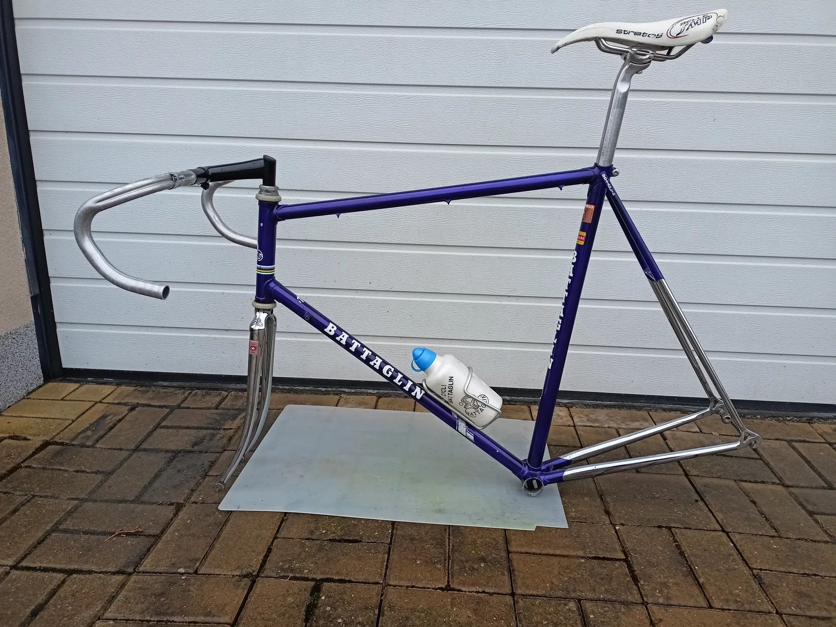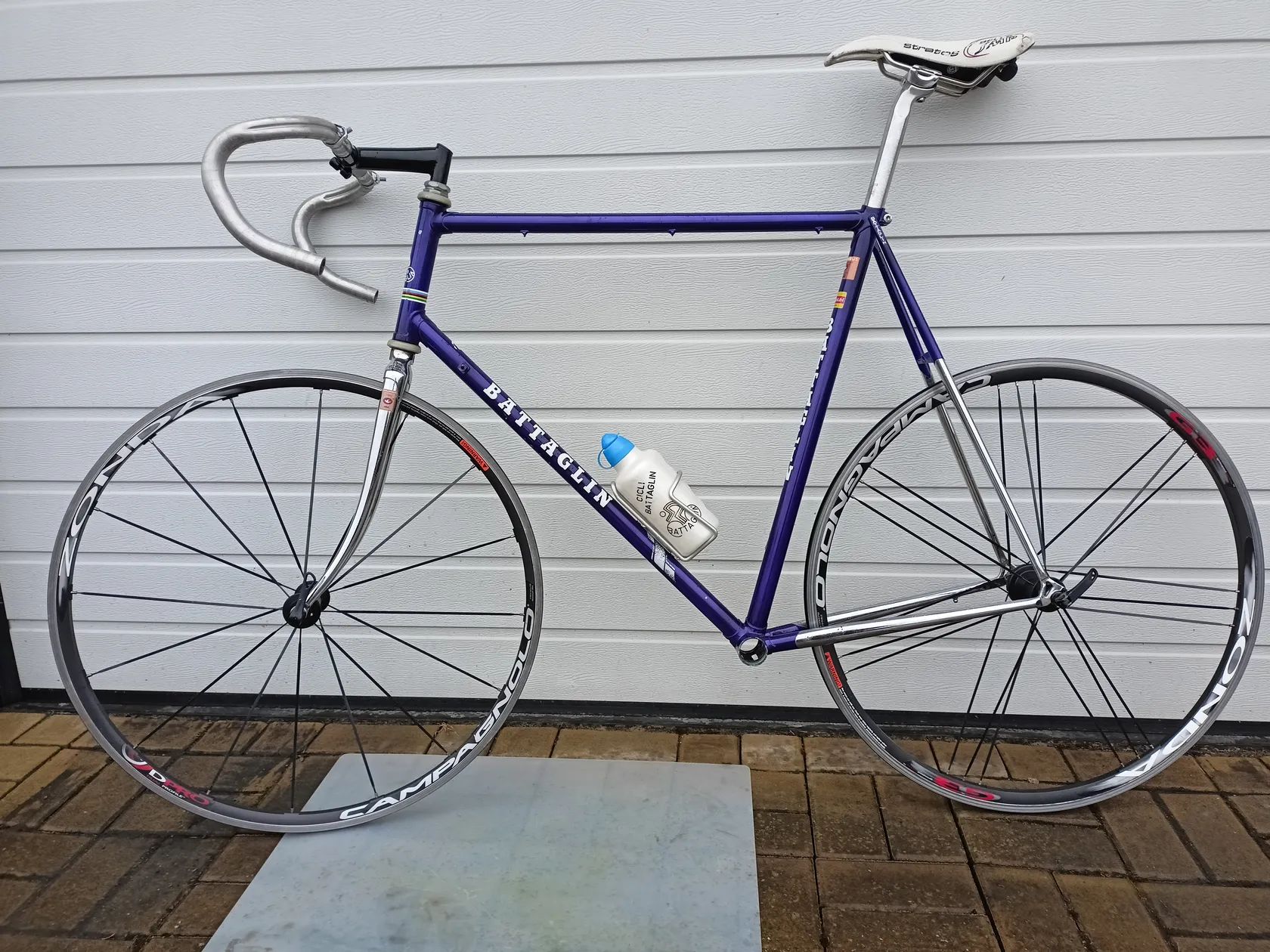Prodám italský ocelový silniční rám Battaglin o velikosti 60 cm. Material Columbus. Rám je v pěkném stavu, celkem pěkný lak i chromy. Má originální vidlici, hlavové složení Campagnolo, podsedlový šroub Miche. Součástí rámu jsou i řídítka s představcem a sedlovka ITM se sedackou SMP (trochu na straně trhlá). K rámu je i dobový košík s originálním bidonem. Při rychlém jednání přidám kola Campagnolo Zonda. Prední kolo je jako nové, ale zadní má na ráfku obrždenou plošku, takže spíše na výměnu ráfku či na náhradní díly. Kolo je podobné kvality jako dobové Colnago ci Tommasini, firma Battaglin stále produkuje top ocelové rámy pod názvem Officina Battaglin. Děkuji. Přeji příjemný den.
