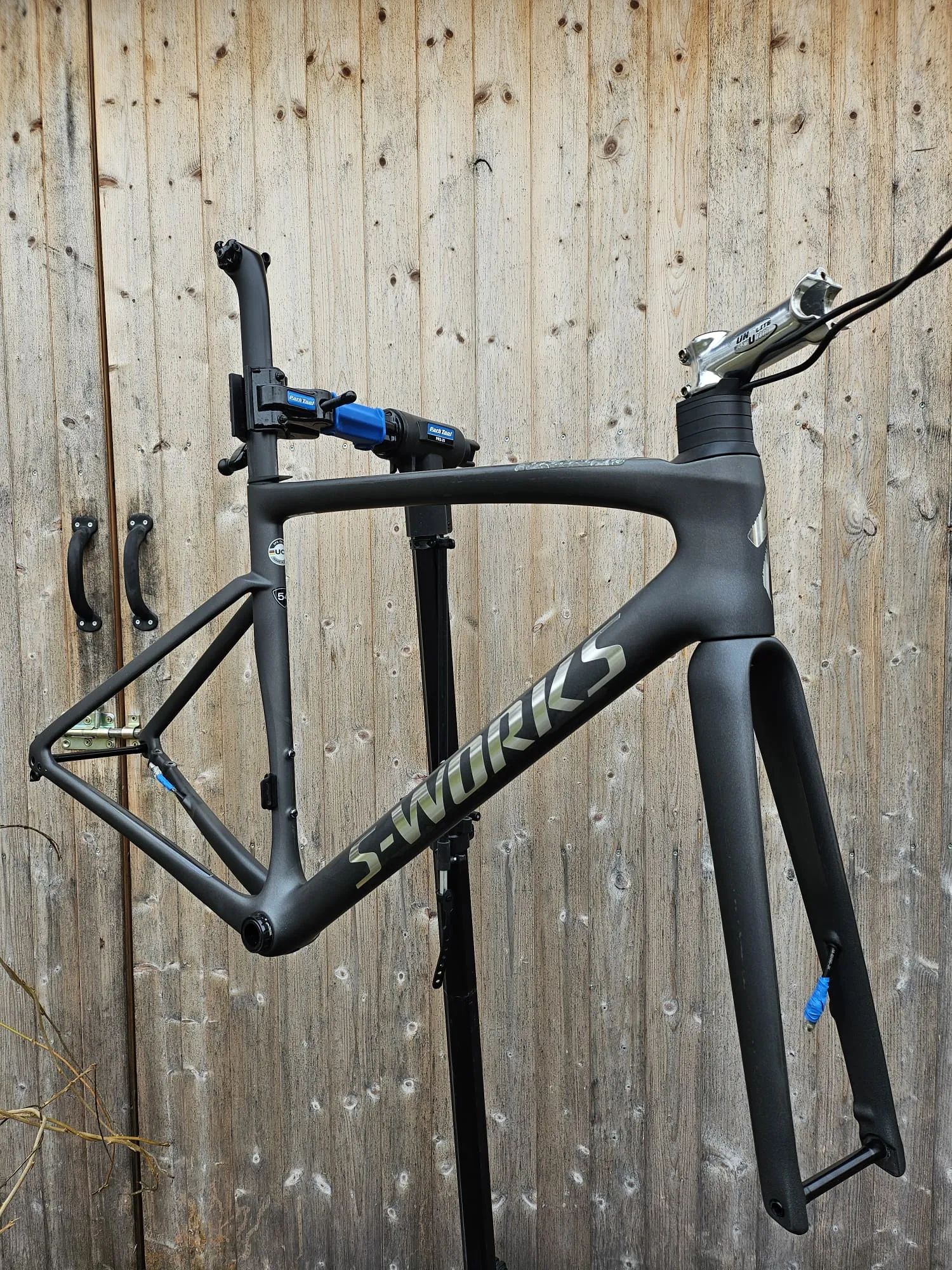 Rámová sada S-Works Tarmac SL7, vel. 54, oficiální česká distribuce, najeto cca 15 tis. km. Nikdy nepadnuto, poslední dvě sezony využíváno méně, po zranění se mi lépe jezdilo na MTB. Důvod prodeje: přechod na vetší vel. rámu kvůli pohodlí. Drobné oděrky na několika místech, matná šedá ready-to-paint finish se na fotkách nedá úplně snadno zachytit, takže “šmouhy” např. na přední vidlici jsou jen odlesky světla v jiném směru, prostě naživo vypadá mnohem líp :-).