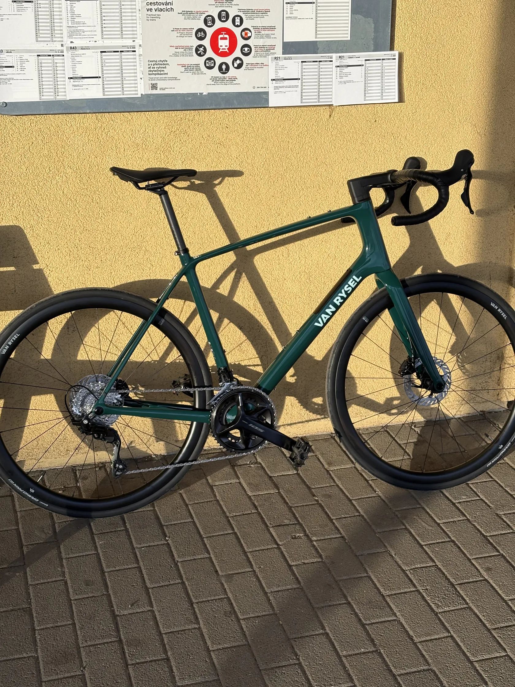 Nabízím k prodeji úplně nové, nejeté silniční kolo Van Rysel EDR CF na Shimano 105 12s, aktuální modelový rok 2026. Kolo bylo čerstvě vytaženo z krabice a sestaveno 31. března. Je v naprosto 100% stavu, bez jediné vady a samozřejmě v plné záruce. V rámu je úložiště s pumpičkou, montpáky, duše a multitool. Oproti sériovému osazení jsem kolo ihned po vybalení výrazně vylepšil. 🔥 Vylepšení na kole: • Zapletená kola: Karbonová Fulcrum Wind 55 DB (aero profil 55 mm, špičková tuhost a setrvačnost). • Pláště: Vittoria Corsa N.EXT • Řídítka: Karbonová 3T Aeronova pro maximální tlumení vibrací a perfektní úchop