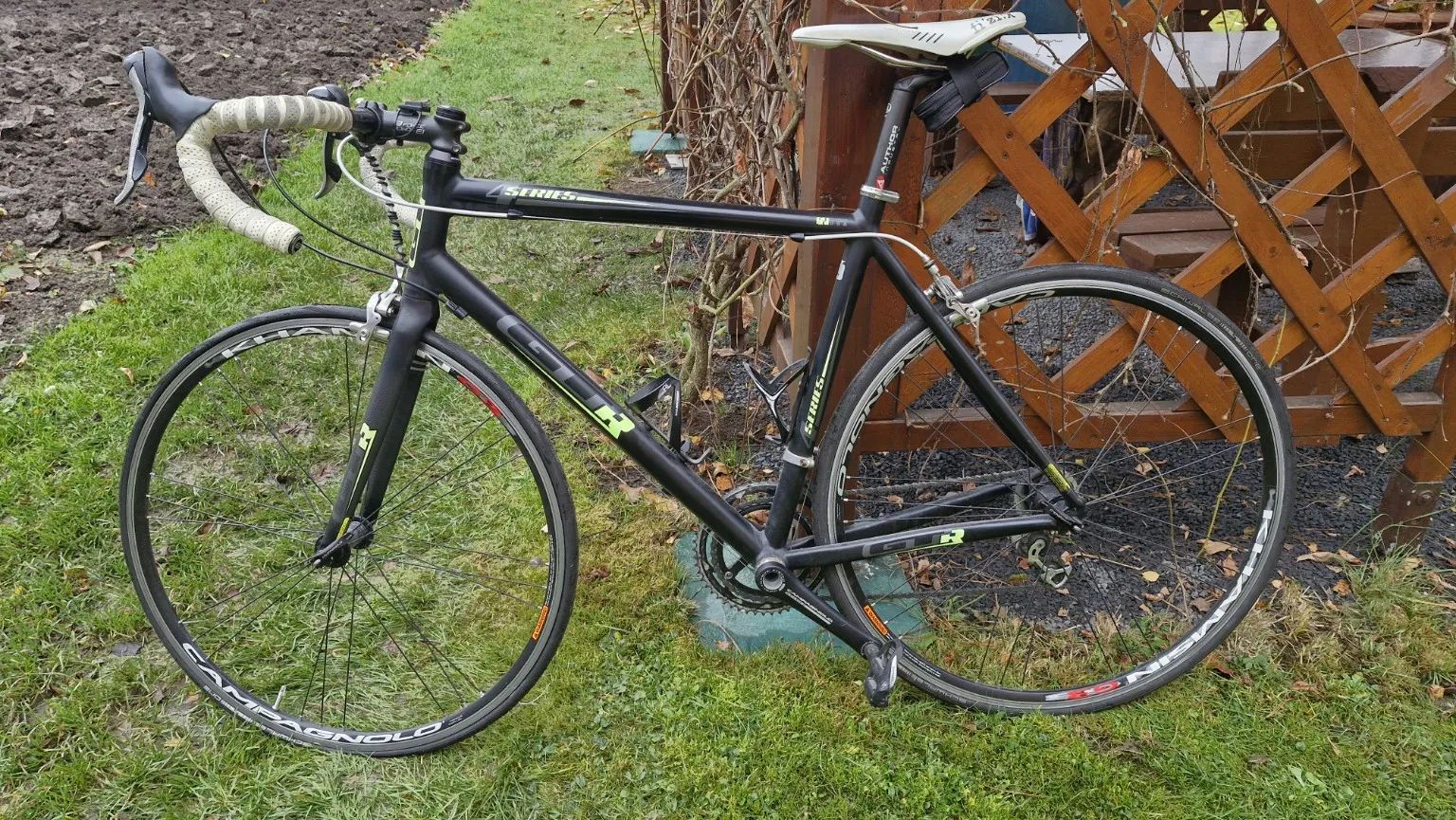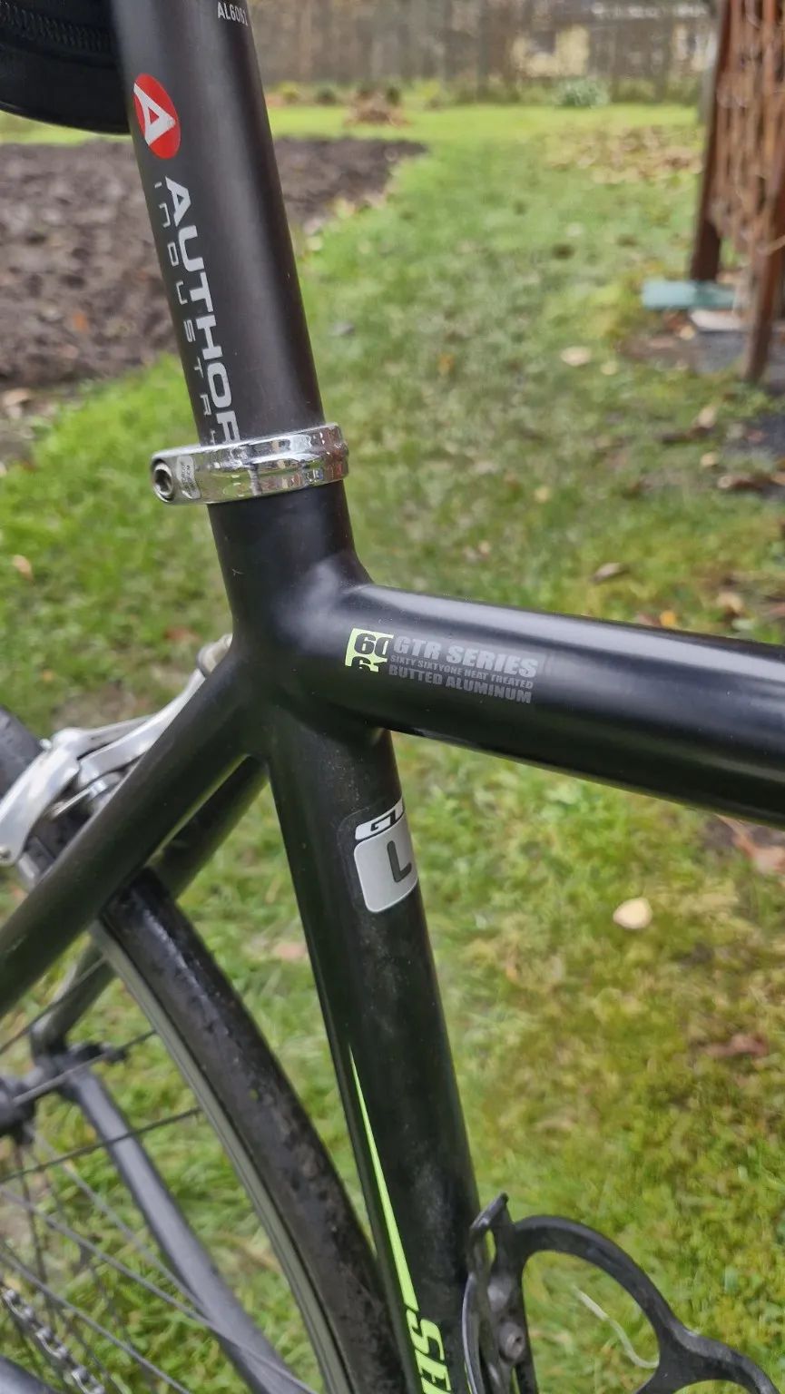 Nabízím k prodeji silniční kolo GT GTR Series ve velikosti 61 cm. Rám je vyroben z hliníku a je v barevné kombinaci černé a zelené. Kolo je osazeno komponenty Shimano Ultegra, kliky Campagnolo Chorus a zapletená kola jsou Campagnolo Khamsin. Brzdový systém tvoří ráfkové brzdy. Jedná se o použité kolo s běžnými kosmetickými oděrkami, které odpovídají jeho stáří a provozu, viz přiložené fotografie. Kolo je plně funkční a vhodné jak pro okamžité užívání, tak i jako solidní základ pro případný další servis či individuální úpravy. Při rychlém jednání možná sleva.