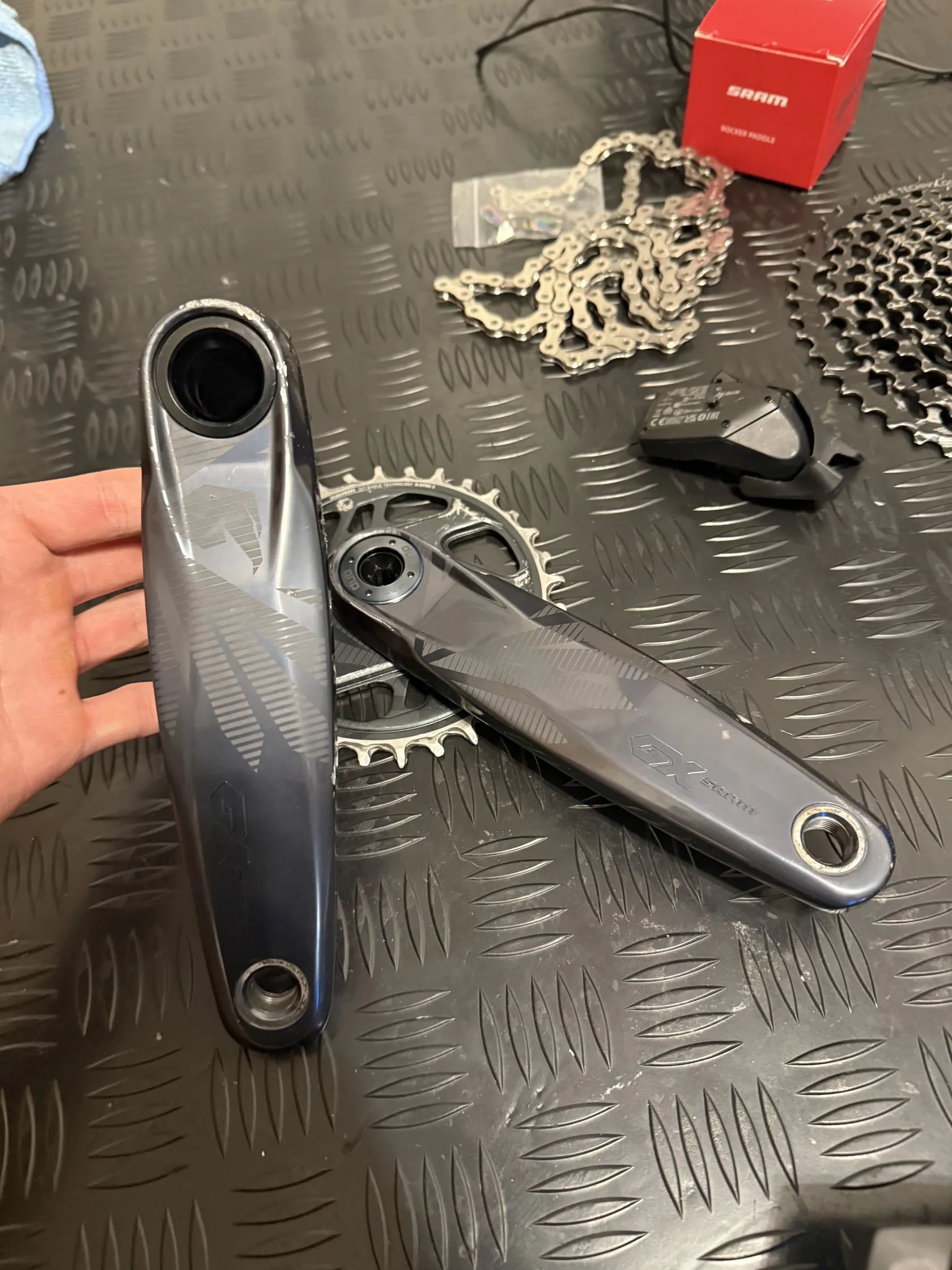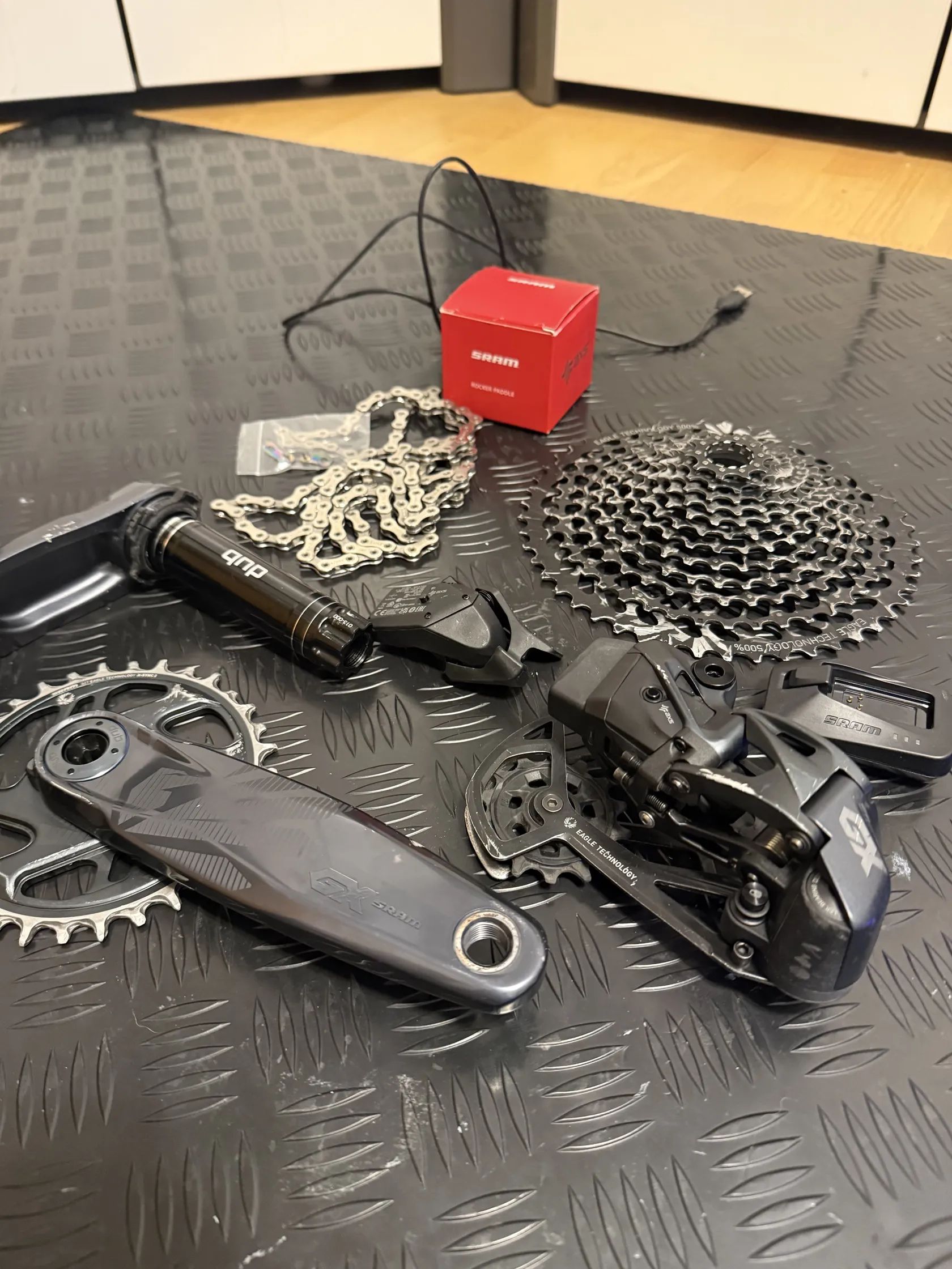 Prodám sezonu ježděnou sadu Sram GX AXS. K sadě je zánovní řetěz X01