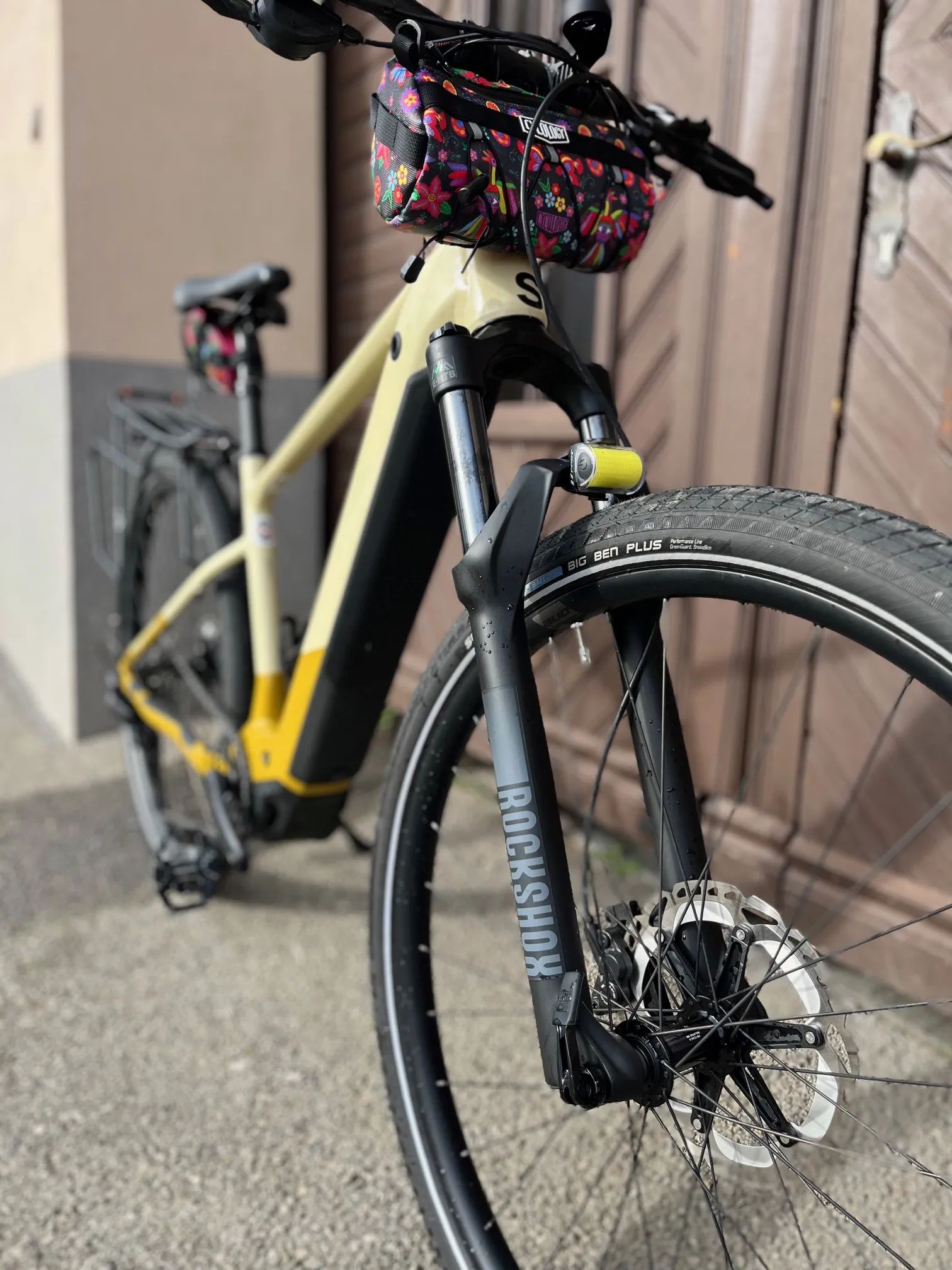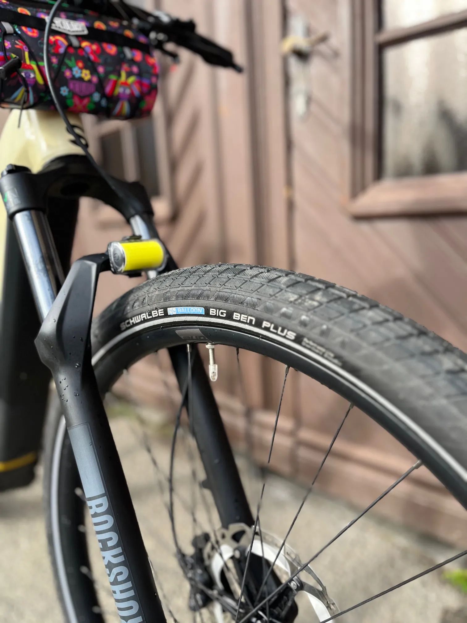 Oproti originálu jsou přidané Shimano XT brzdové kotouče a obutí Schwalbe Big Ben s hladším vzorkem