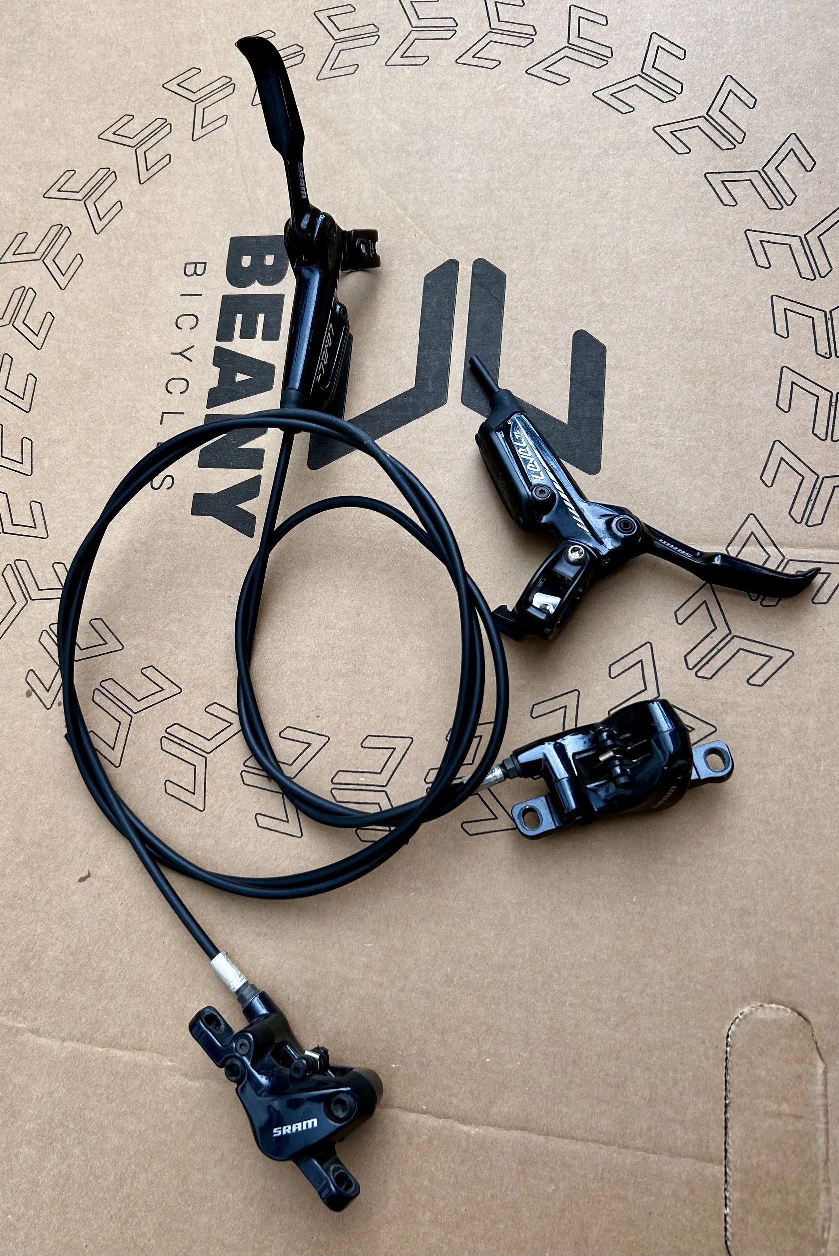 Prodám sadu brzd Sram Level TL. Přední hadice 68cm, zadní 133cm. Zadní hradice u páky ustřižená pro protažení rámem. Desky viz foto, málo najeto, včetně objímek a úchytu na řazení Sram.