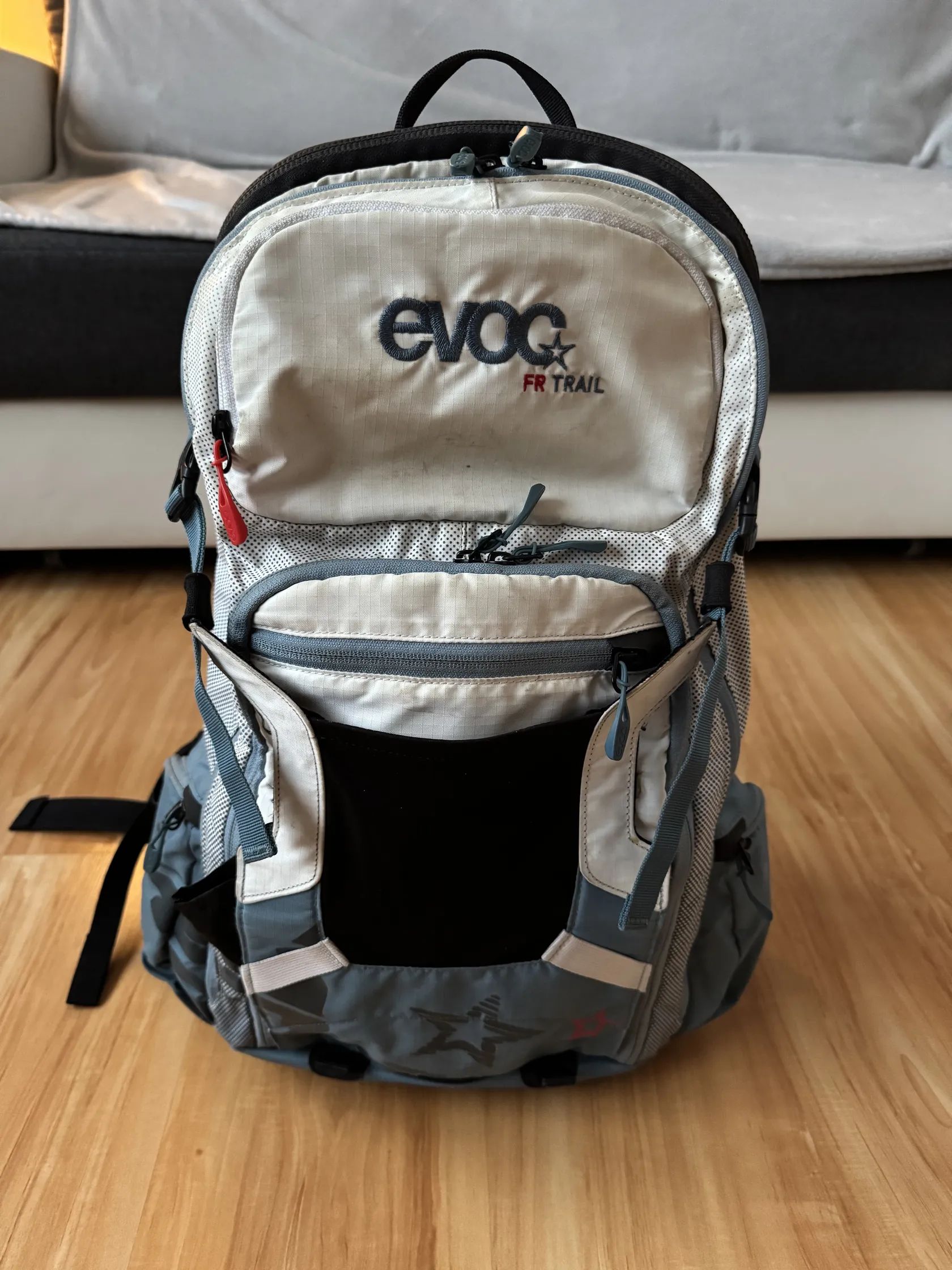 Prodám batoh Evoc FR Trail 20, Dámská verze women's fit, velikost zad M/L (úplně v pohodě může používat i muž - vyzkoušeno) Vhodný na kolo i outdoor, včetně integrovaného chrániče zad (lze ho vyjmout) a pláštěnky. Batoh má spoustu vychytávek a je velmi propracovaný a odolný a celkově je v super stavu. Osobní odběr možný v Jičíně, nebo po domluvě lze zaslat preferuji Zásilkovnu nebo PPL