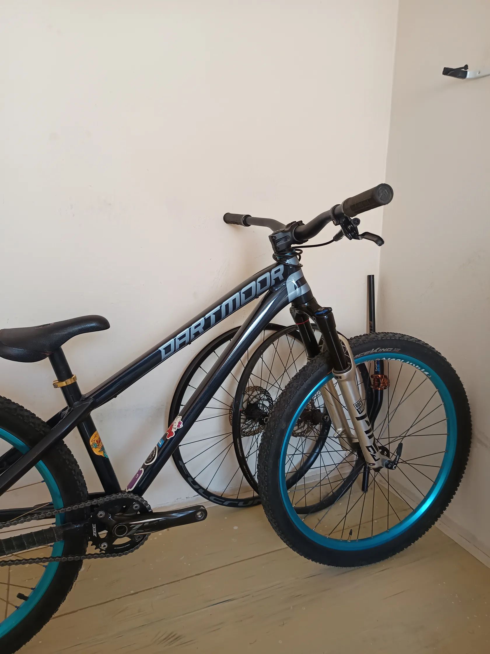Prodám dirtové kolo DARTMOOR Two6player 2022 - Steel Blue,velikost SHORT.Kolo skládáno v roce 2023 s osazením: vidlice-Rockshox Pike DJ Fork 26" 100mm Silver 40T řídítka-Merida expert TR2 780mm představec-Merida expert gripy-DEITY Slimfit black zadní brzda-Shimano MT201 zadní nába-DARTMOOR Singlespeed 2012 přední nába-JAAX ráfky-Dartmoor Fortress 2012 kliky-SHIMANO ZEE sedlovka-dartmoor pivotal délka 20cm sedlo-pivotal. Bez pedálů.Kolo má oděrky z běžného používání.Dotazy na e-mail.Pouze osobní předání.