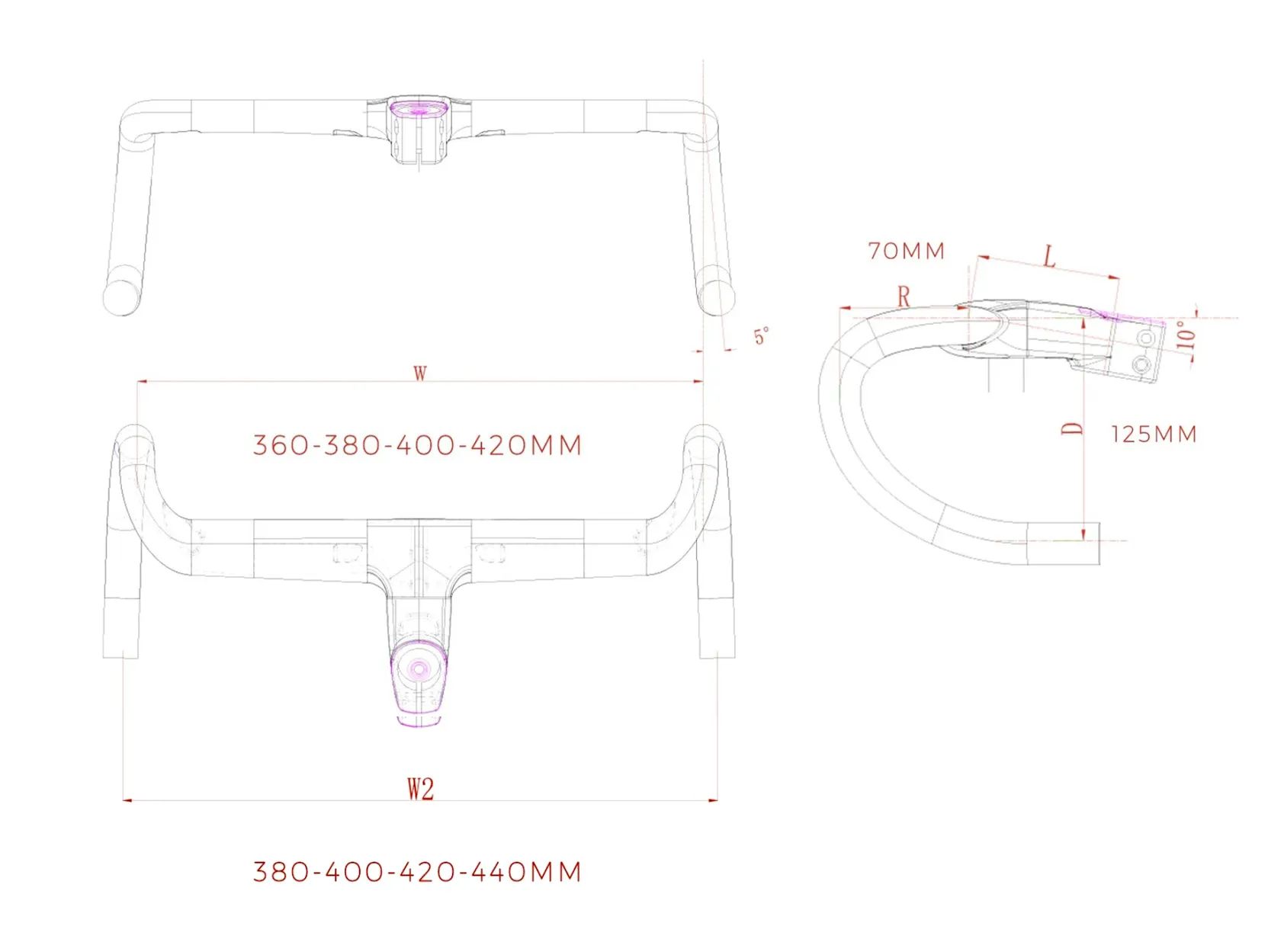 • Reach: 70 mm, drop: 125 mm, sklon: -10 stupňů