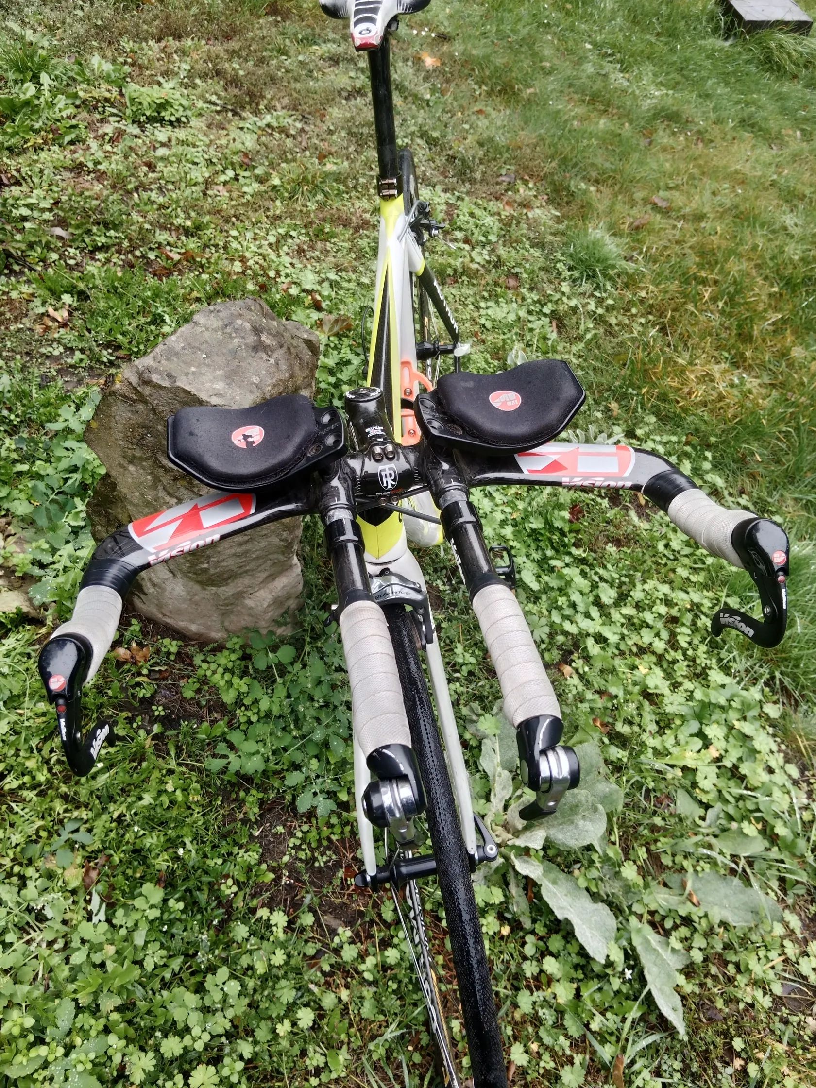 Časovkářské kolo, ježděné jen závodně 1/2 ironmany, nyní mi tu již dva roky leží nevyužité a chtělo by opět závodit Dával jsem cca 5 dlouhých závodů za rok, sem tam nějakou tu kratší časovku, ježděné 5 sezón (celkem cca 3km) Rám karbon Zapletená kola CORIMA MEDIUM karbon Kokpit vision tři max karbon Představec Ritchey karbon Vidlice karbon Osazení komplet Shimano Dura-ace 10 kazeta/ 53-39 vpředu Velikost M (já 172cm) Ve své době top kolo Případně mám i disk EQUINOX + 7 tis
