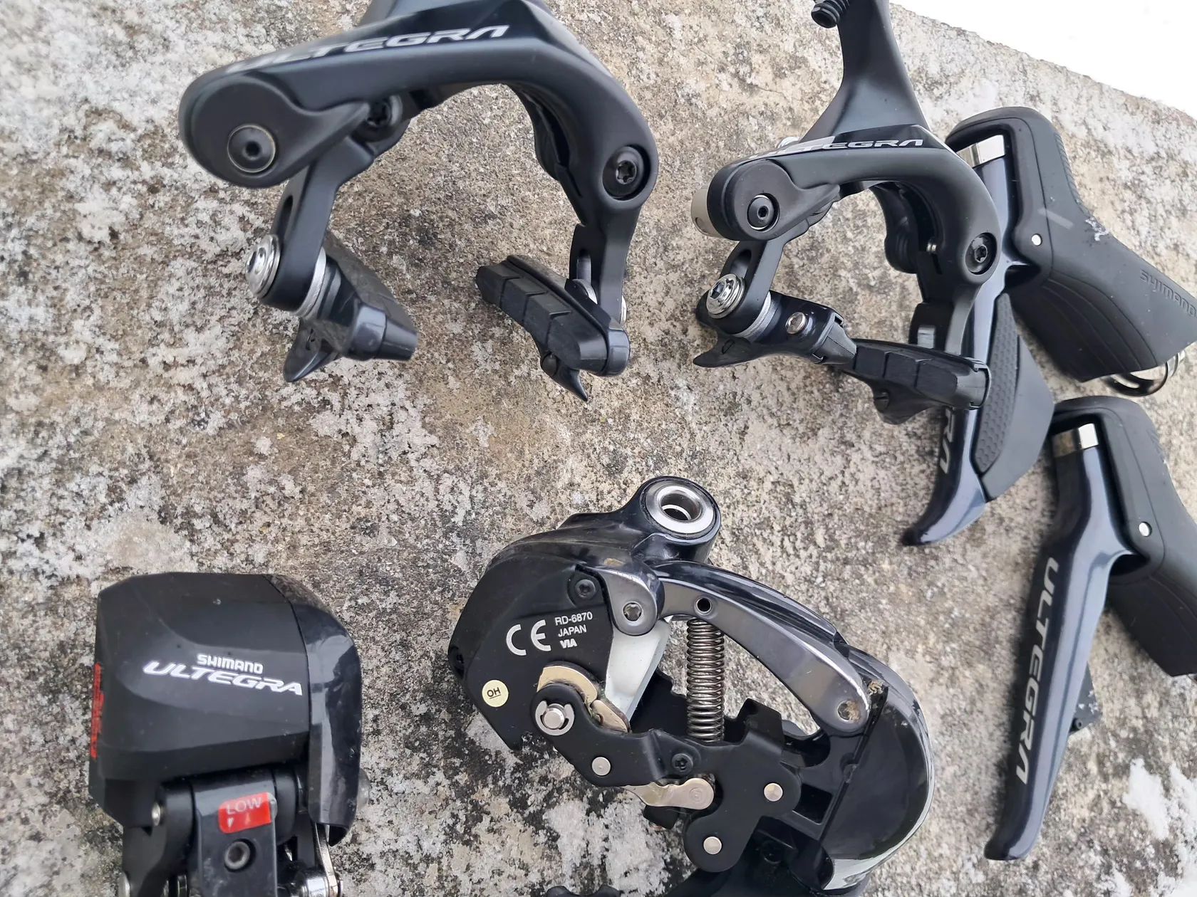 Prodám silniční sadu Shimano Ultegra, ráfkové brzdy, minimálně jetá, výborný stav.