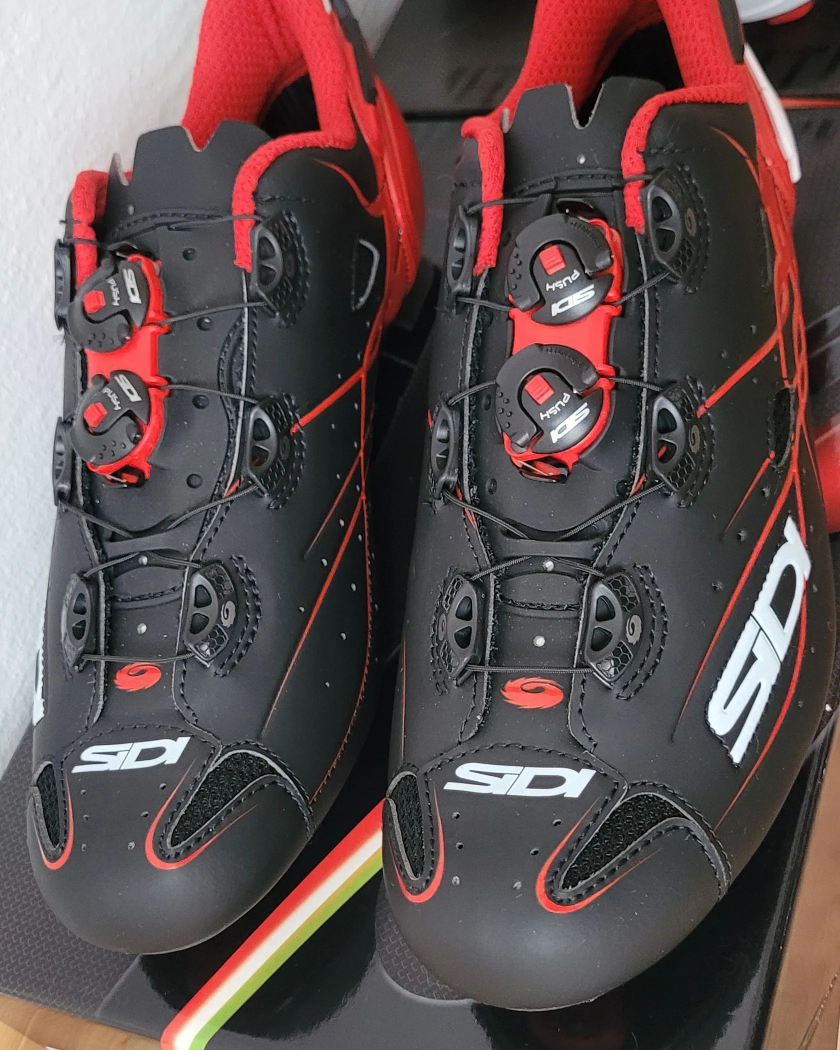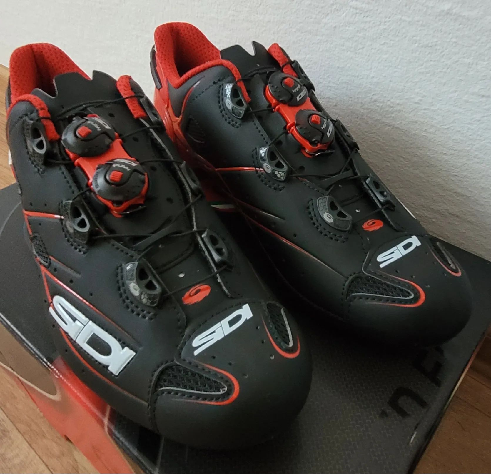 Prodám zcela nové, nepoužité silniční závodní tretry SIDI SHOT Carbon (matt black/red, vel. 43). Podrážka karbon, svršek umělá kůže Lorica, zapínání Tecno + nastavitelná pata, plně kompatibilní s pedály TIME, SHIMANO, LOOK. Cena 3 800,- Kč + poštovné.