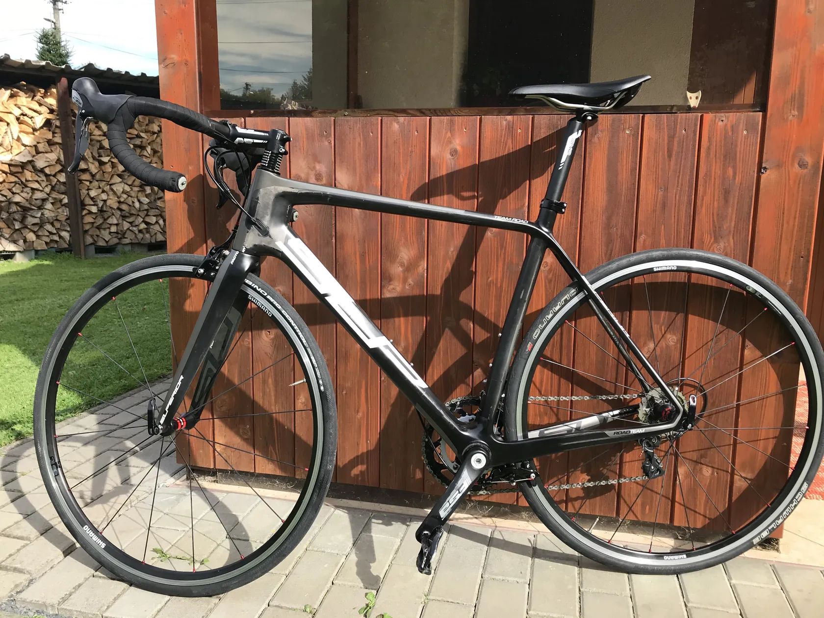 Prodám silniční kolo značky Superior. Kolo je postavené na lehkém, tuhém karbonovém rámu. Momentálně je nastaveno na postavu výšky 184 cm.