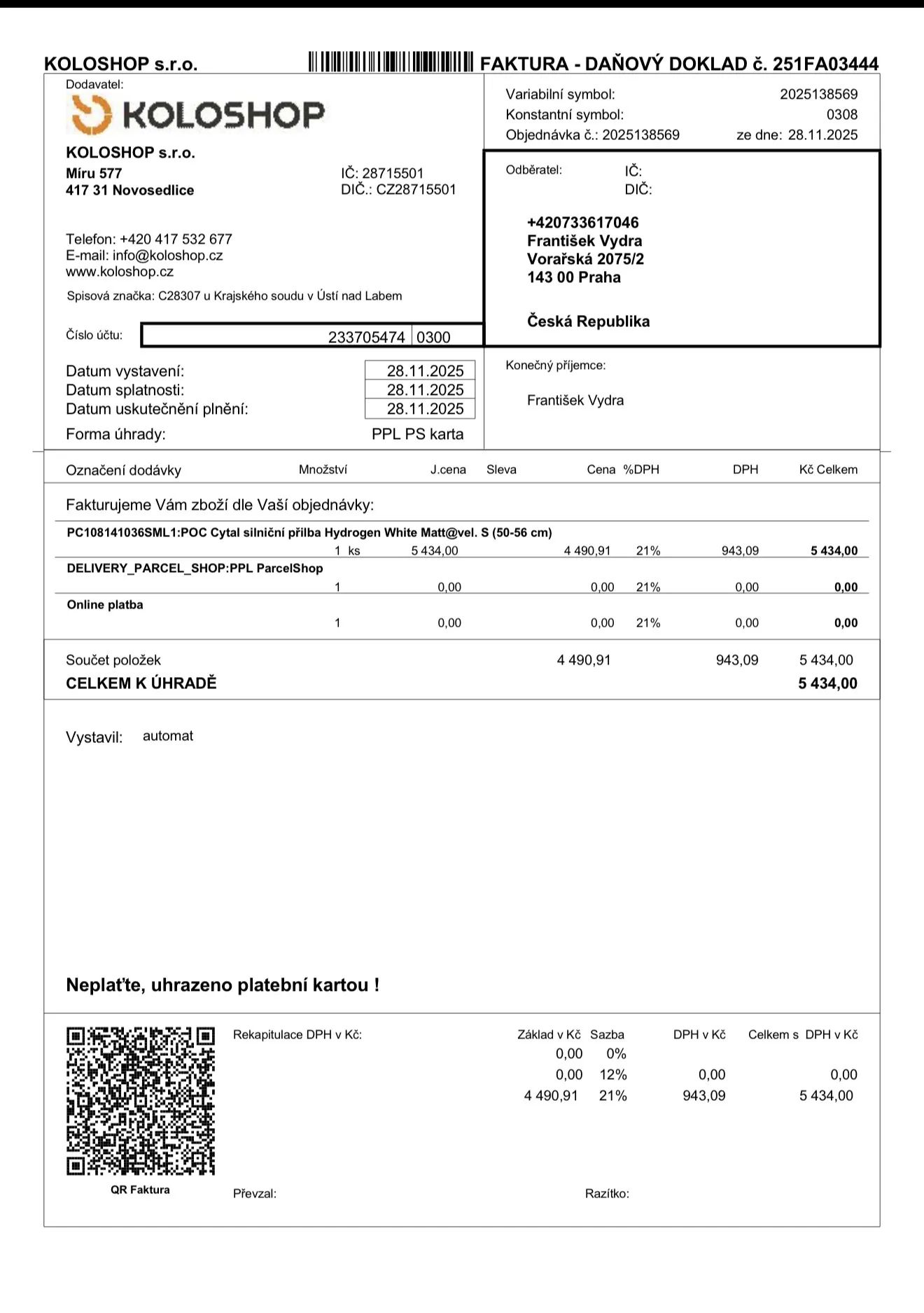 Dobrý den, mám zájem o Vámi nabízený inzerát POC CYTAL Hydrogen White Matt, S (50-56cm)