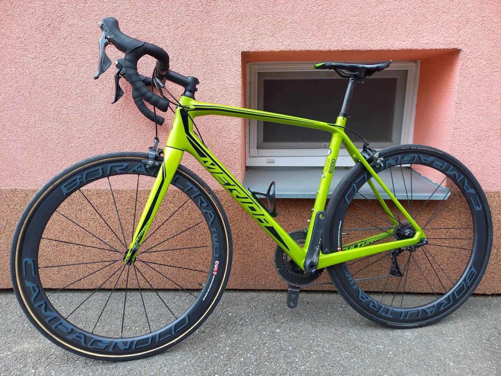 Prodám karbonové silniční kolo Merida Scultura 6000, včetně pedálů. Kolo je v dobrém stavu, pouze drobné oděrky na laku. Velikost rámu: M/L (ježděno se 177cm) Rám: karbon Přehazovačka: Shimano Ultegra Brzdy: Shimano Ultegra (+náhradní špalíky) Ráfky: Campagnolo Boraultra Two (ceramic ultimate level technology) 5cm Pláště: Continental Ultra Sport 25mm Celková váha kola: 8kg