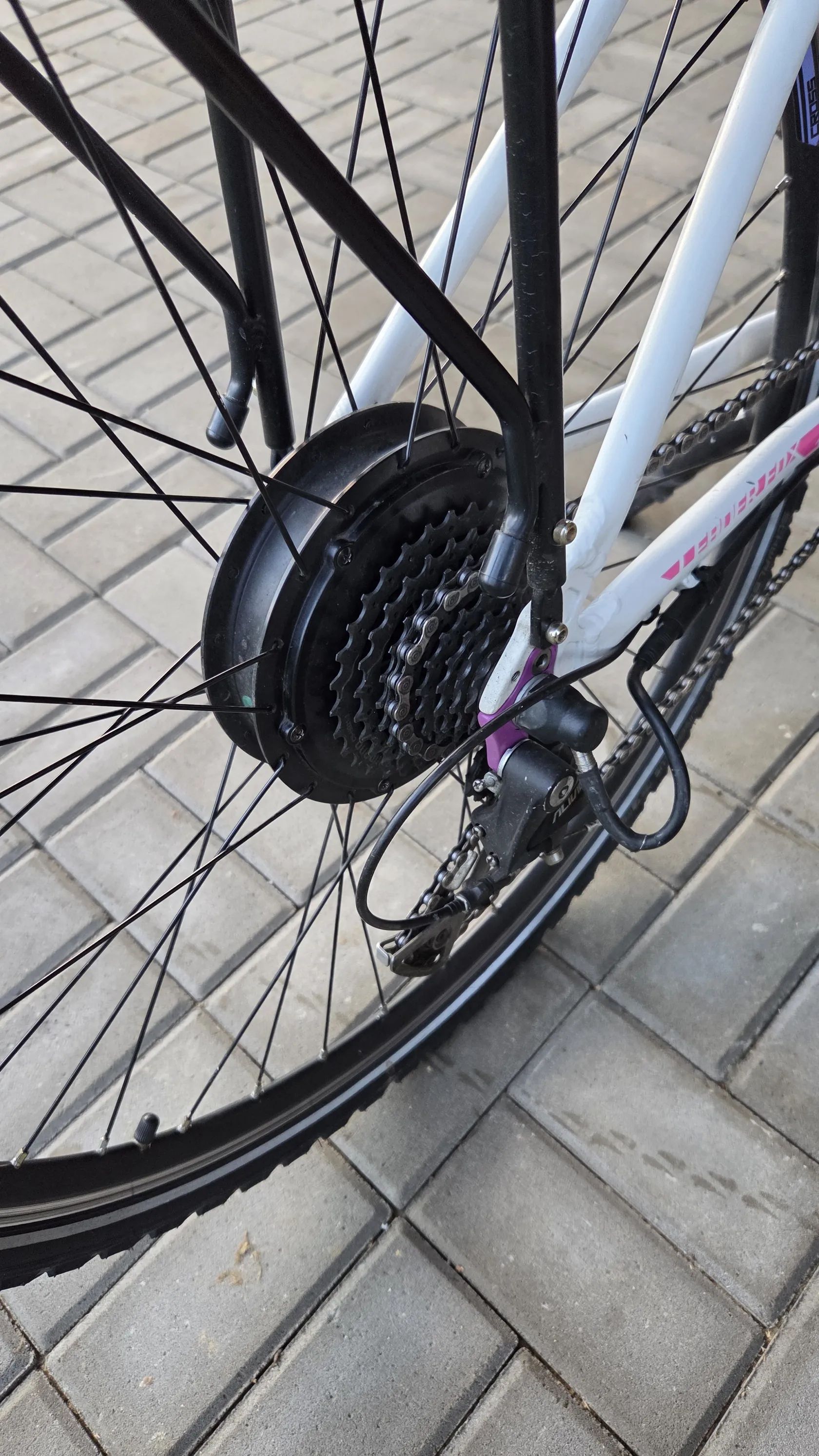 Dámské trekingové elektrokolo Leader Fox Venosa se zadním motorem 8FUN a 5ti stupni asistence + walk asistence. Baterie 500Wh (14Ah), plus v ceně ještě jedna. Nájezd cca 3000km, v pěkném stavu.