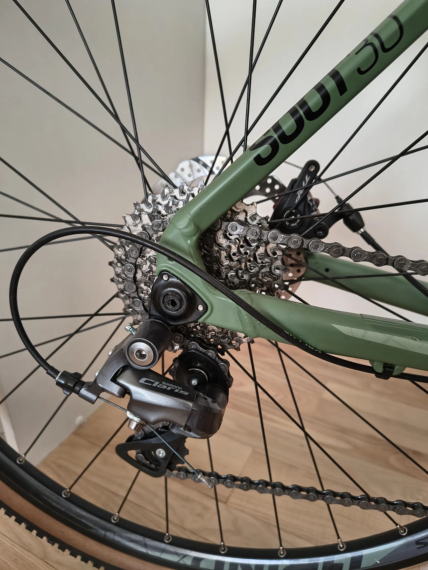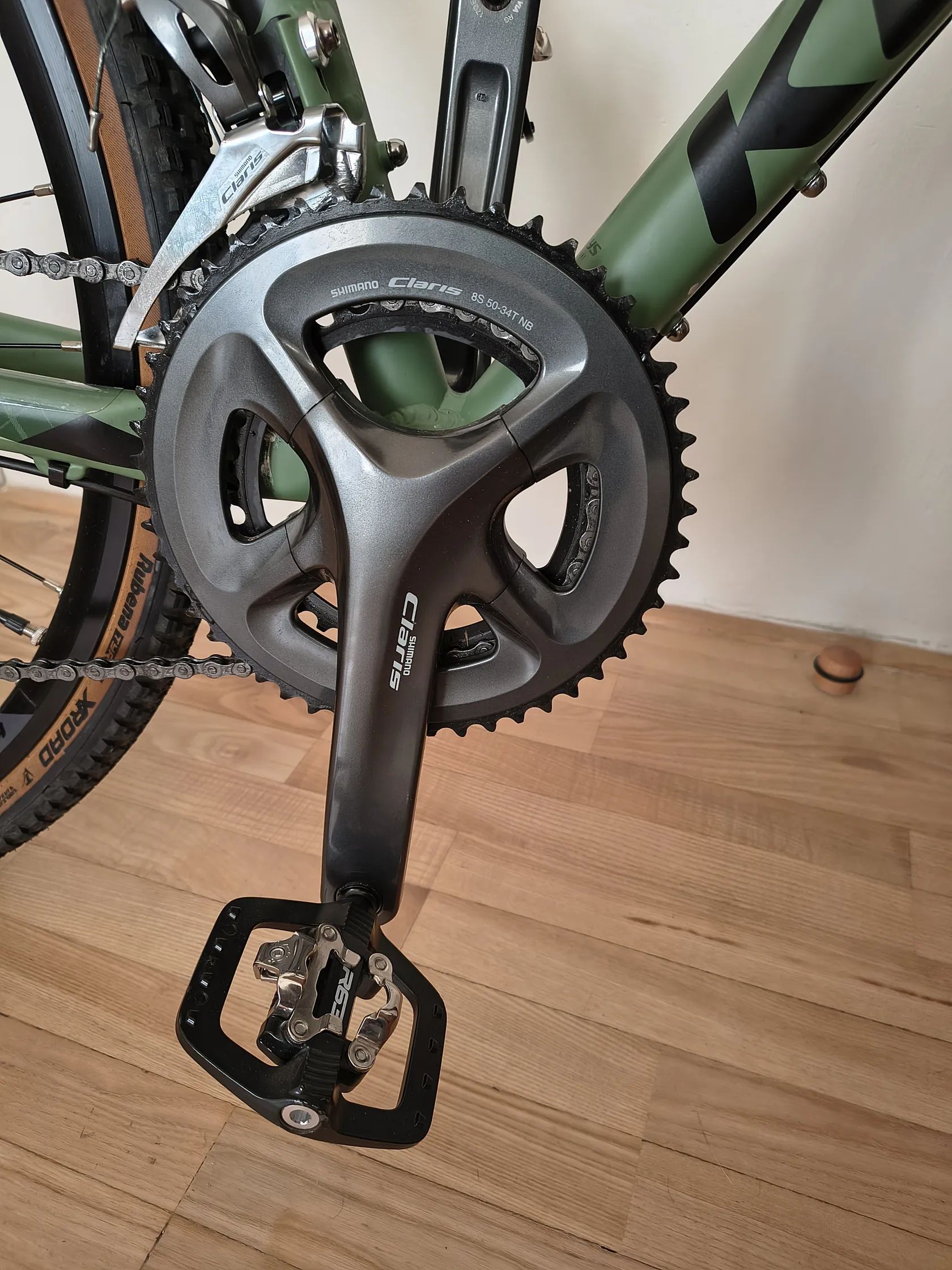 Osazení: Shimano Claris 2×8, kotoučové brzdy TRP.