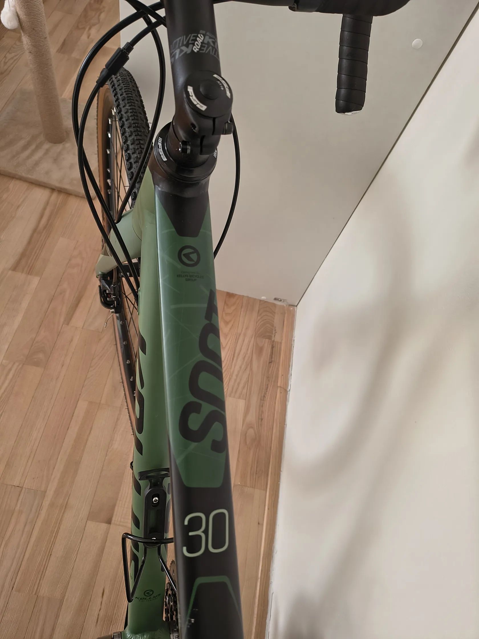 Prodám Kellys Soot 30, vel. M (54). Na fotografii je sedlovka nastavena na výšku jezdce 175 cm. Kolo je téměř jako nové. Manželka na něm jela jen párkrát minulou sezónu.