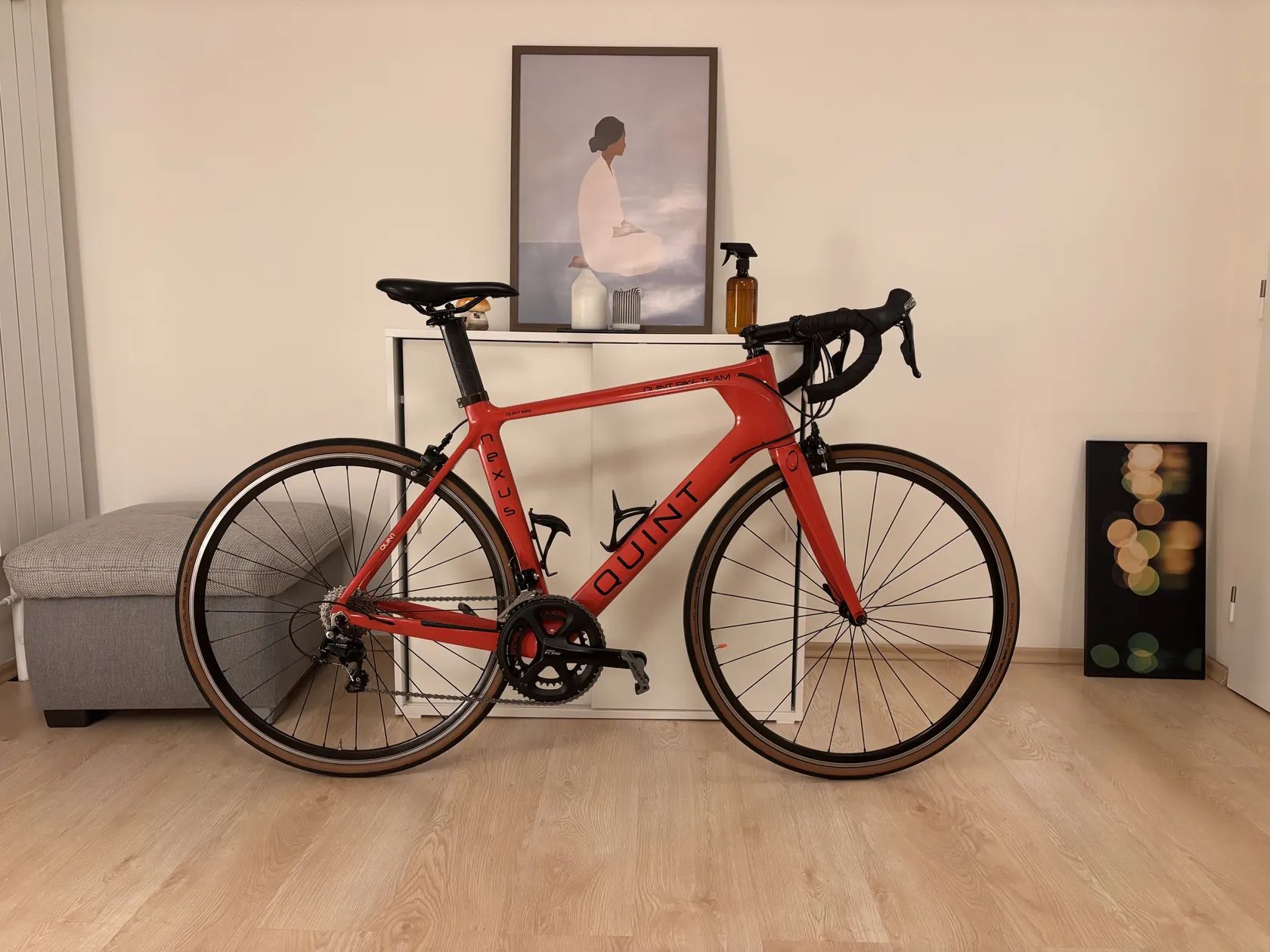 Predám karbonové silniční kolo Quint Nexus veľkosti 58cm. Nastavené na výšku 180cm.