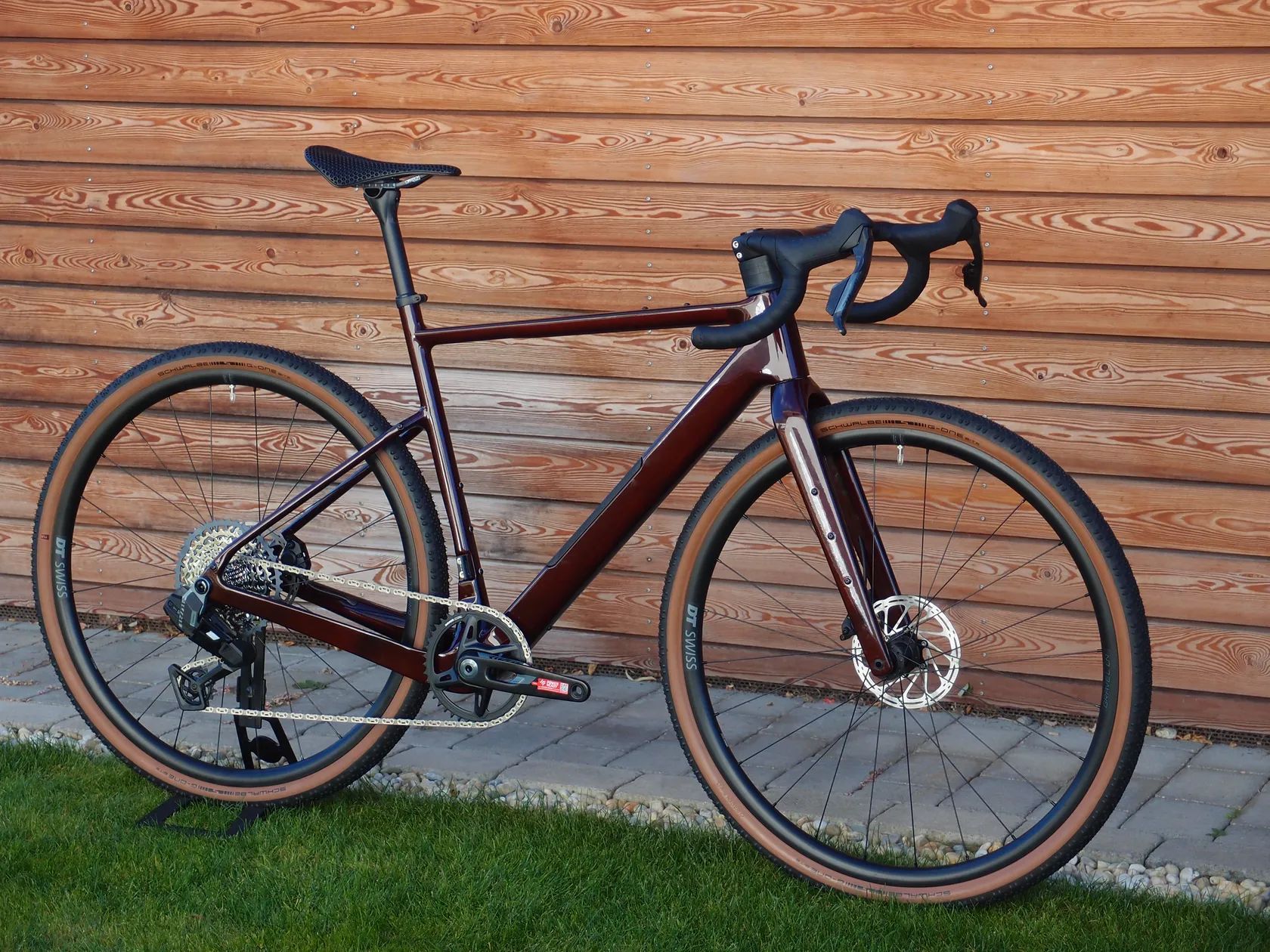 Komponenty: Rám: karbón, úložný priestor s magnetickým krytom FIDLOCK (+taštička na náradie) Riadidlá: karbónové integrované s predstavcom 420/490/80mm Sedlovka: karbónová 27,2mm, 0mm offset Sada: komplet SRAM Rival E1 XPLR Wide AXS 1x13 Kľuky: Sram Rival E1 XPLR DUB WIDE 1x13, 42T 172,5mm Prehadzovačka: Sram Rival AXS XPLR E1 13s Kazeta: Sram Rival XPLR XG-1351 13s, 10-46z Kolesá: DT Swiss Gravel LN, 24mm vnútorná šírka ráfiku Kotúče: 2 x Sram Centerline CenterLock 160 mm Plášte: Schwalbe G-One bite, 45mm Sedlo: 3D Reyt Carbon Reťaz: Sram Rival E1 Flattop 12/13s, 120 článkov