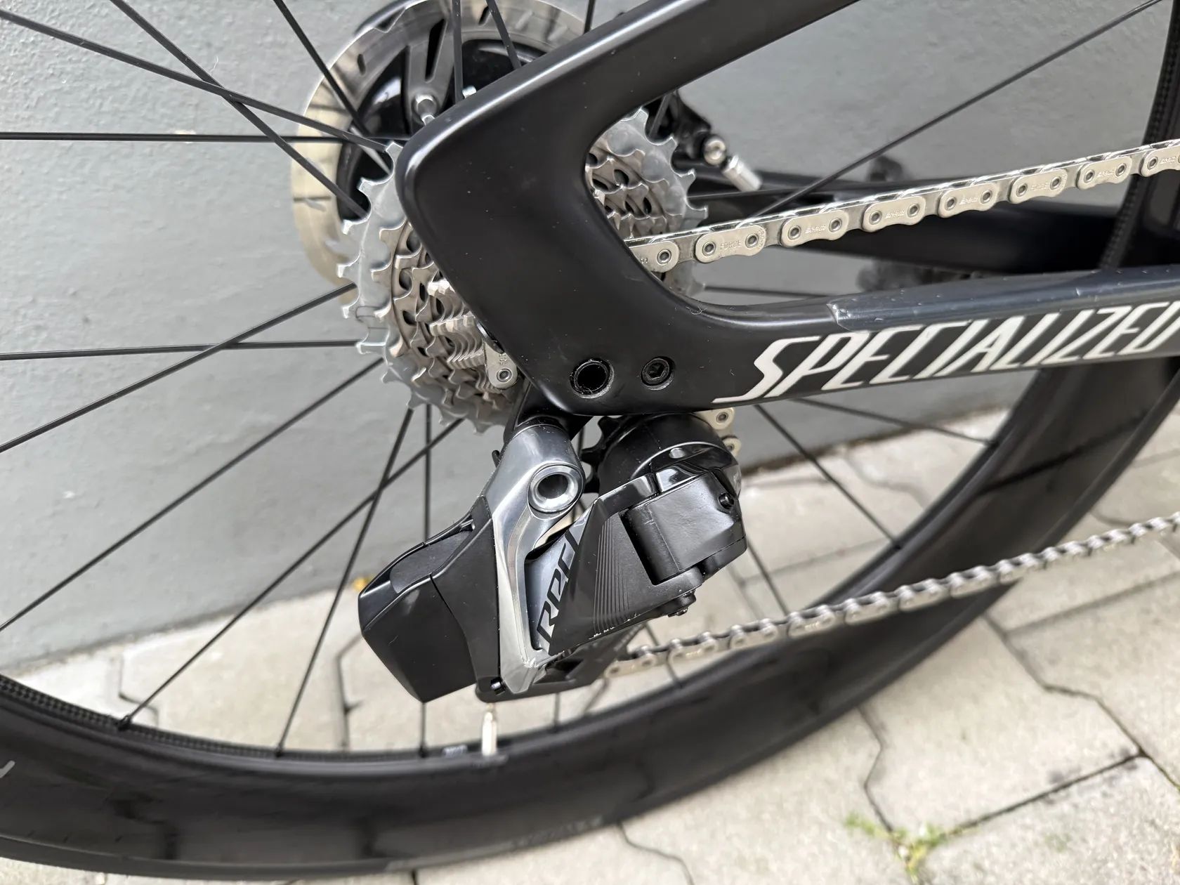 Ve výbavě jsou zapletená karbonová kola Roval CLX64, pneu Turbo S-Works v šíři 28mm.