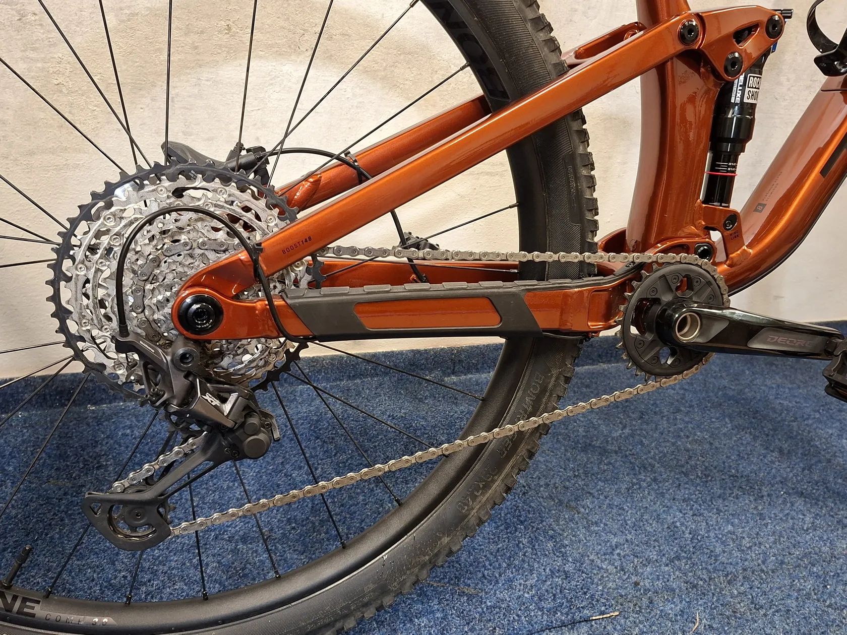 Osazení Shimano SLX/XT 1x12 – spolehlivá střední až vyšší třída s širokým rozsahem převodů, vhodná i pro sportovní jízdu