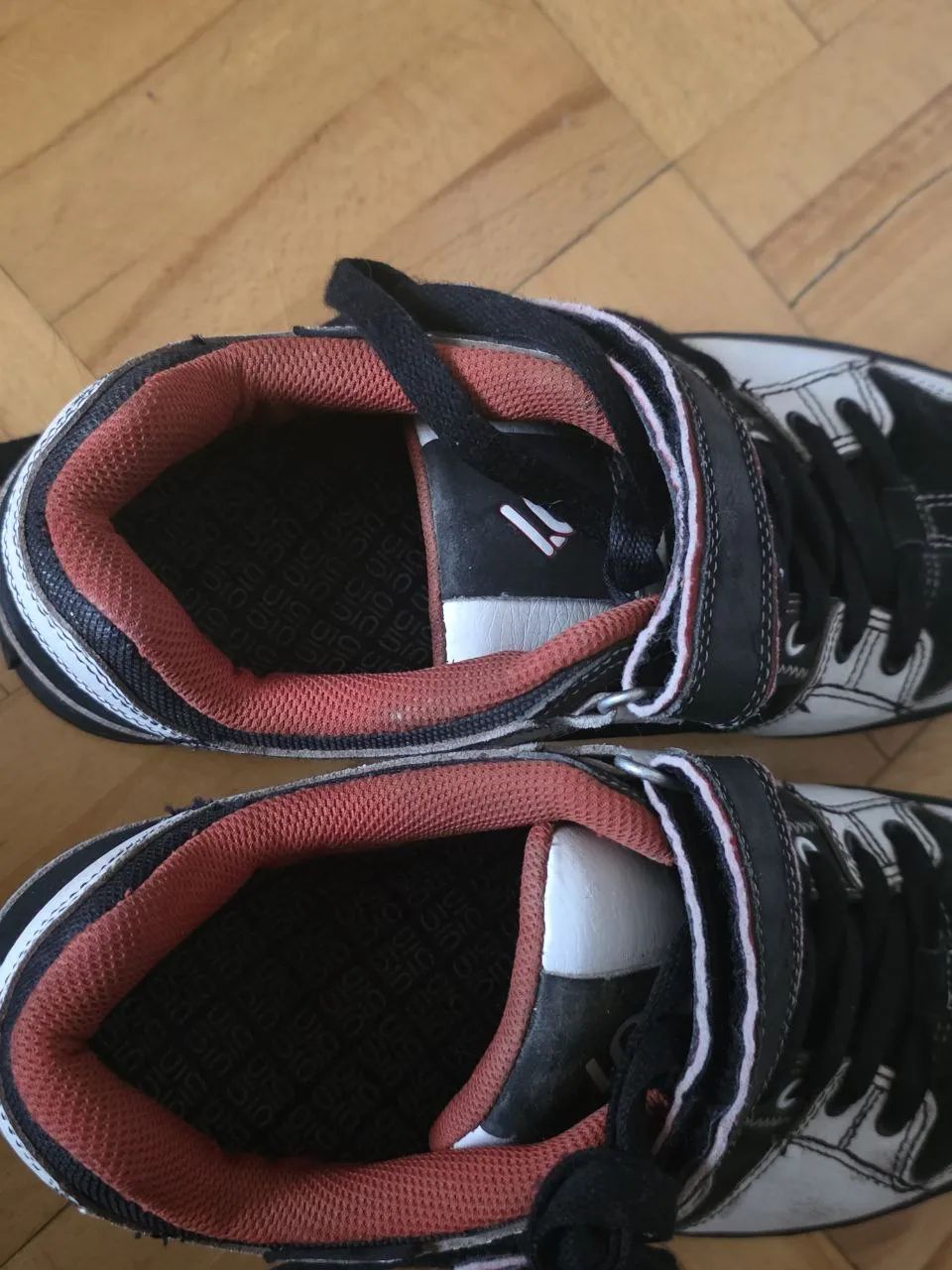 Tenisky Five Ten Minnaar v černé a bílé barvě s vínovou podšívkou. Sportovní model určený pro horská kola a aktivní nošení: poskytují dobrou přilnavost k pedálům a stabilitu. Mají tkaničky a další zapínání na suchý zip pro bezpečné uchycení. Svršek je vyroben z odolných materiálů a špička je zesílená.