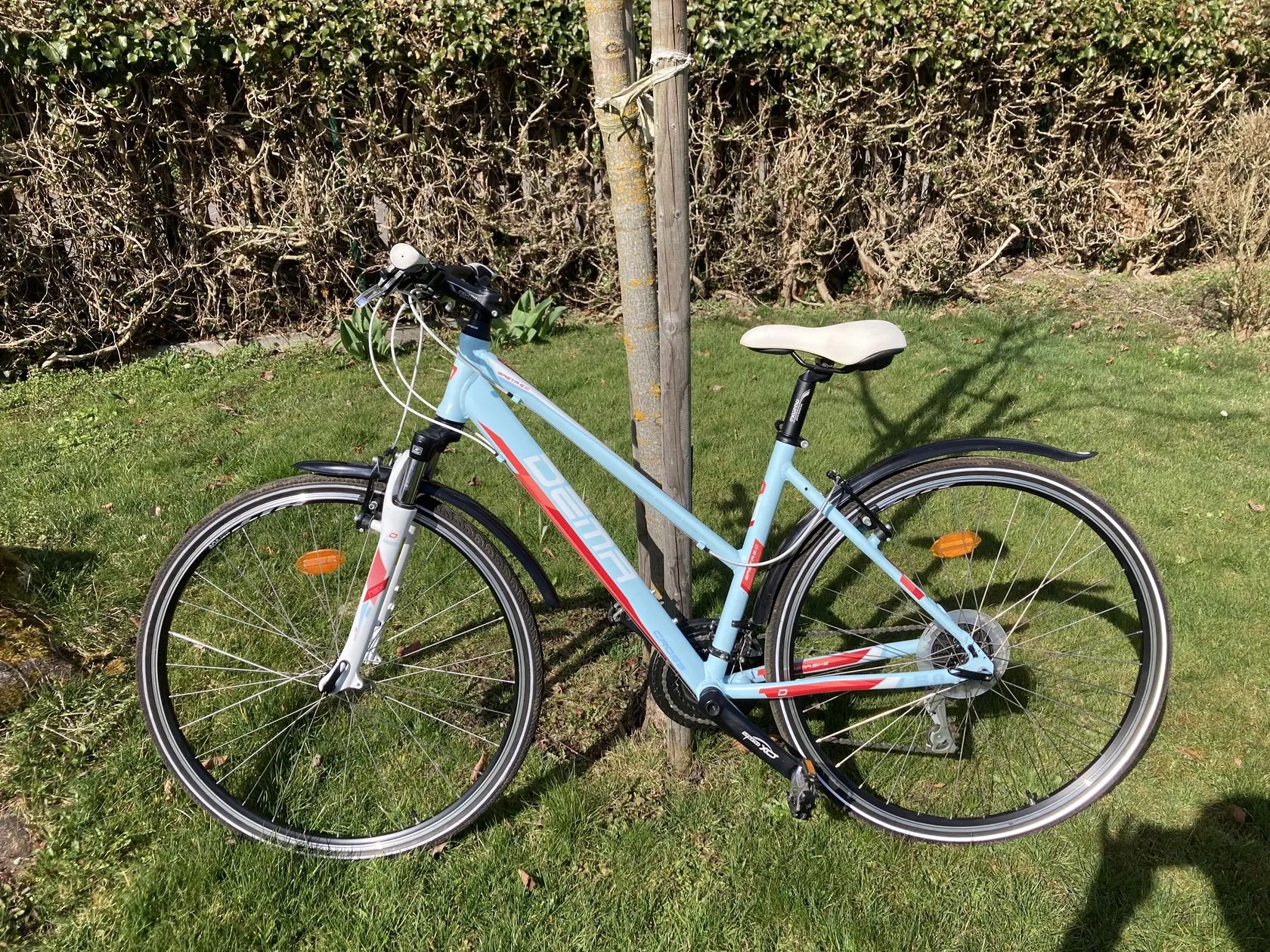 Dámské krosové kolo Dema, Gaeta 5.0 v dobrém stavu, na cyklostezku (nevhodné na těžký terén), hliníkový rám, kola 28”, převody Shimano 3x8,odpružená vidlice Suntour cca 63 mm zdvih, klasické V-brzdy. Sleva možná!