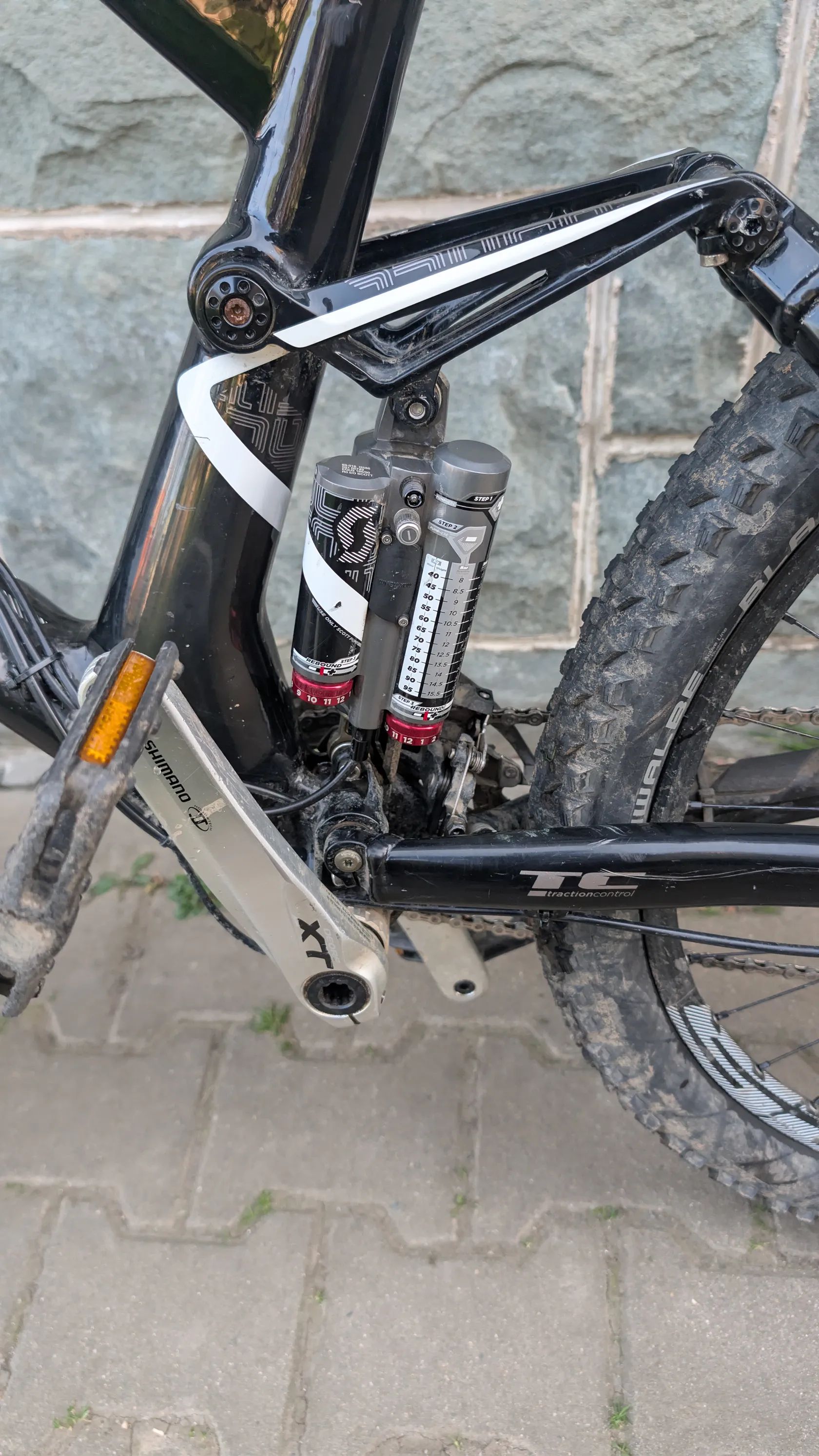(dojezd do terénu), s možností zamknout tlumiče pro lepší efektivitu šlapání