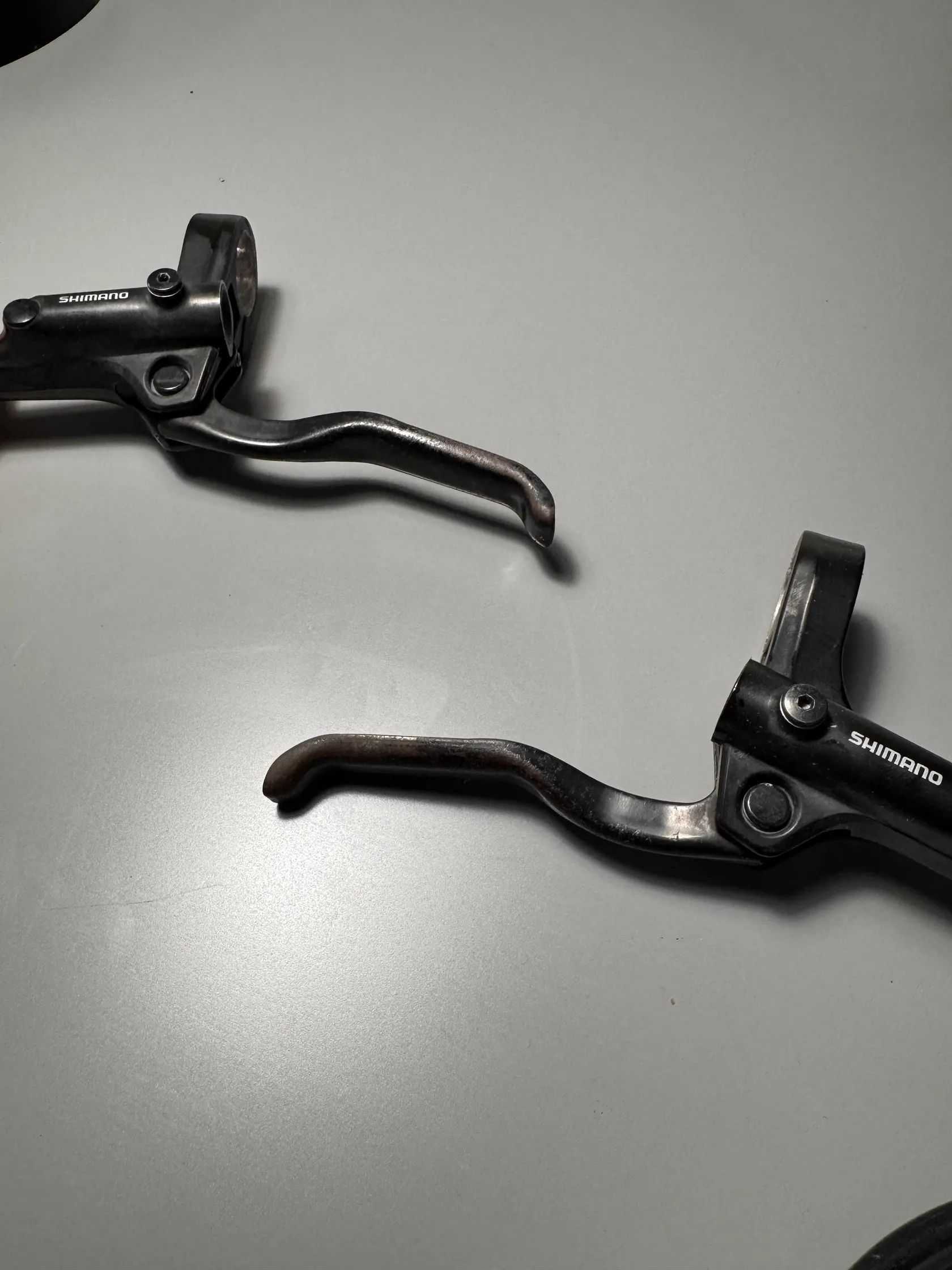 Prodám použité hydraulické brzdy Shimano MT200, dvoupístkové. Páčky jsou mají ošoupaný povrch od používání