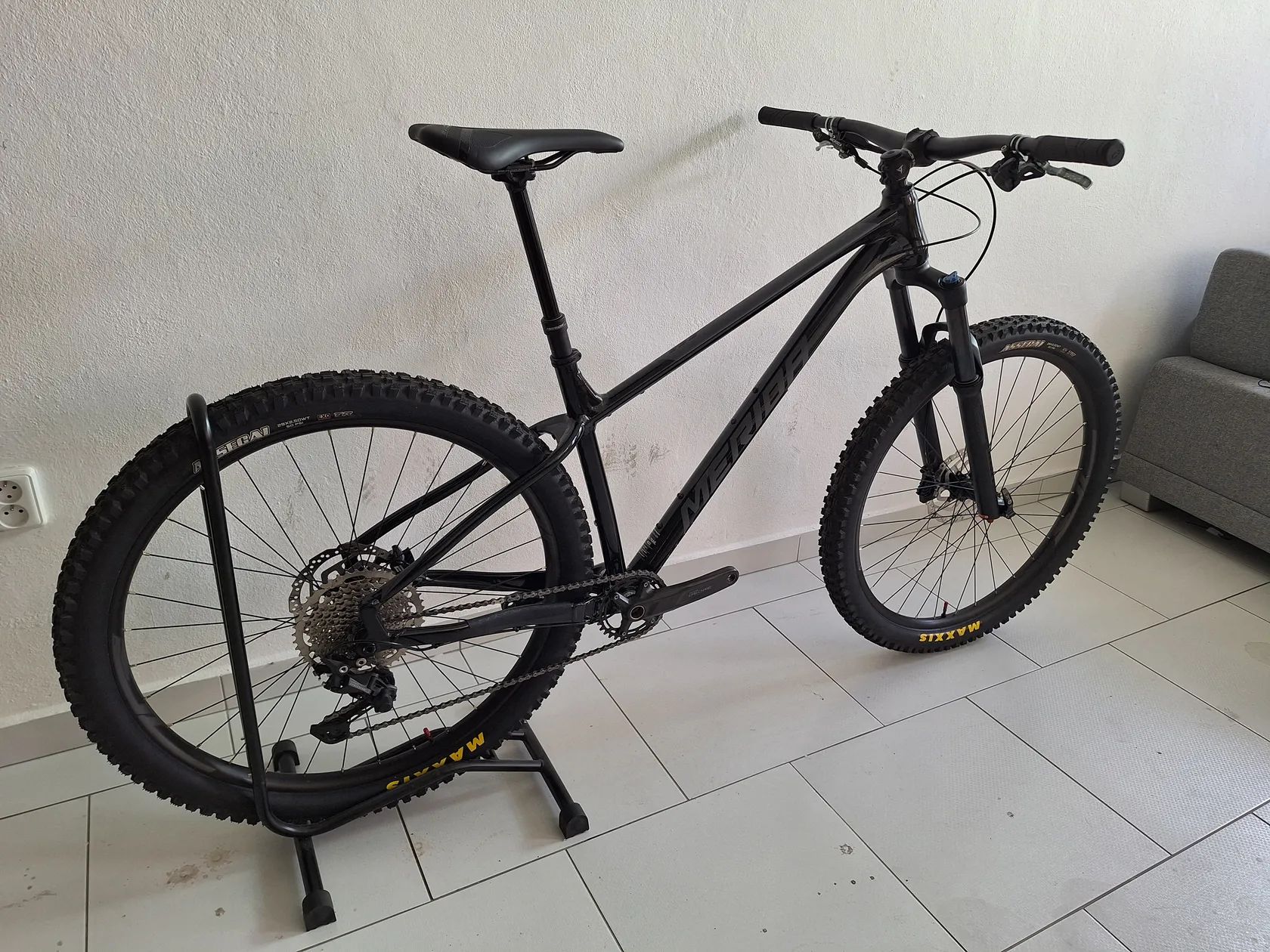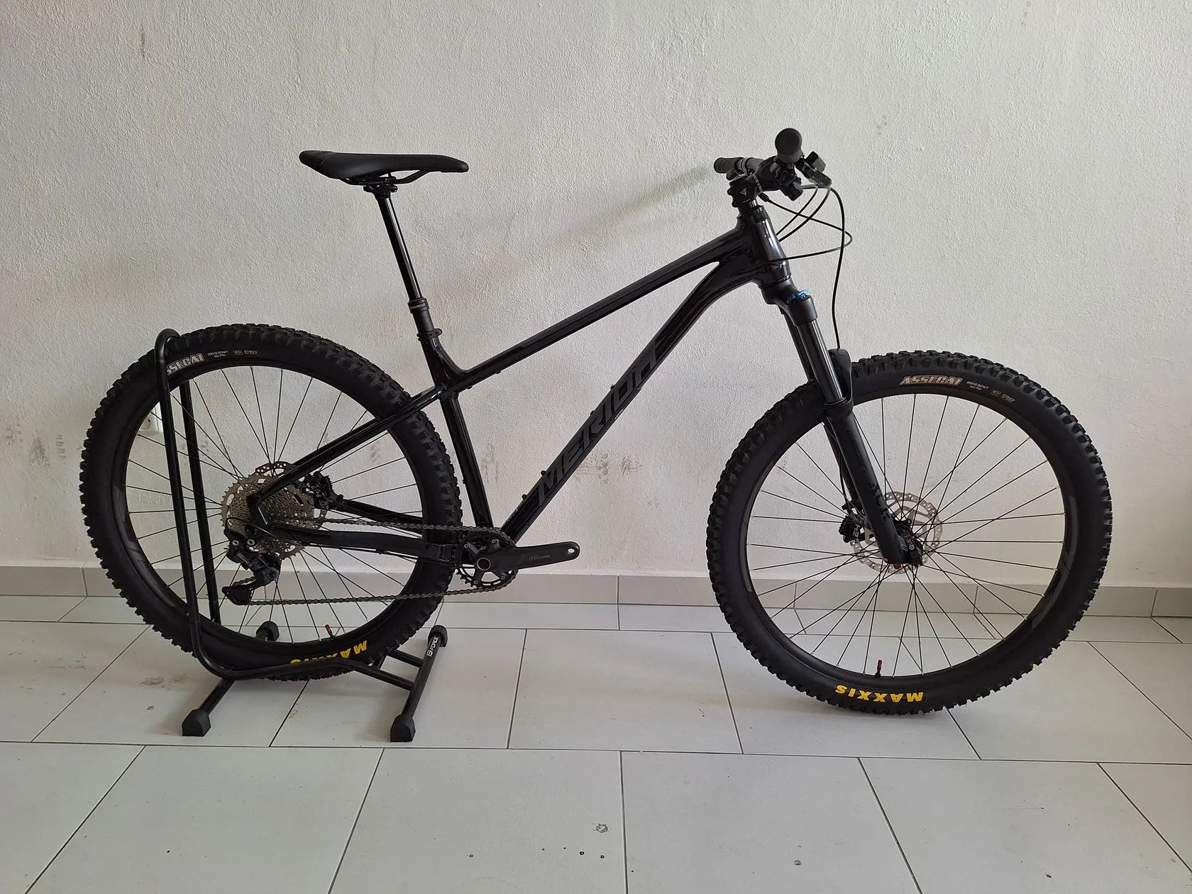 Výbava Přehazovačka: Shimano Deore 1x10 Kazeta: Shimano Deore 11-46T Kliky: Shimano Deore 175mm Převodník: 32T Vidlice: Suntour XCR34 140mm zdvih Brzdy: 4 Pístkové Pro E4 (Originální brzdy Tektro dám ke kolu, je možná i jejich montáž) Kotouče: Shimano RT10 180mm Pláště: Bezdušové Maxxis Assegai 29x2.5" Teleskopická sedlovka: Merida Comp TR