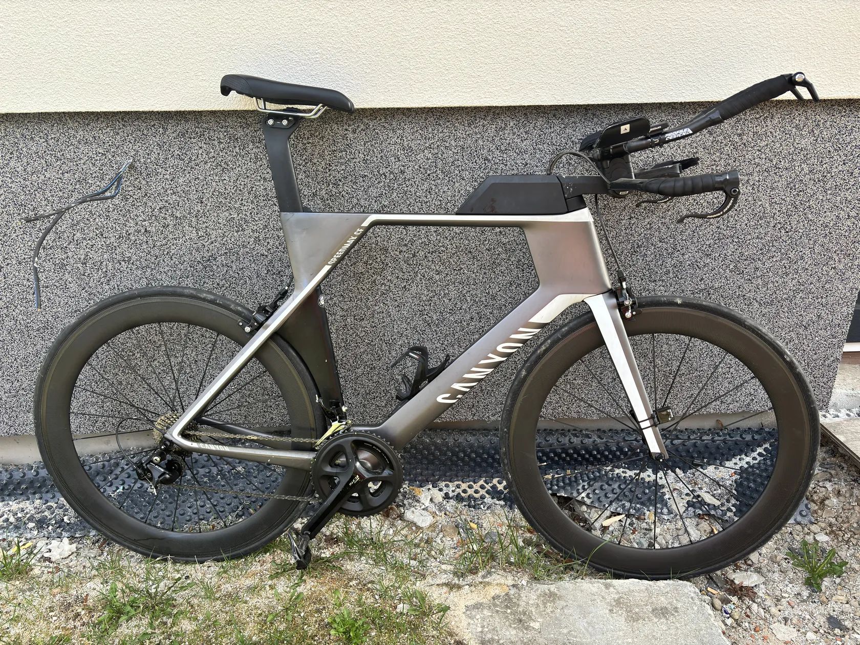 Canyon ve velice pěkném stavu pár krát na triatlonu jinak jetý na trenažéru.. Vybavení: Brzdy, řazení, kliky: Shimano 105 včetně wattmetru Karbonové náboje, ráfky na galusky výška 5 cm Karbonový kokpit, sedlovka.