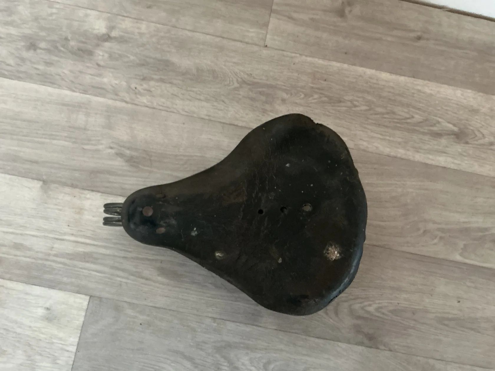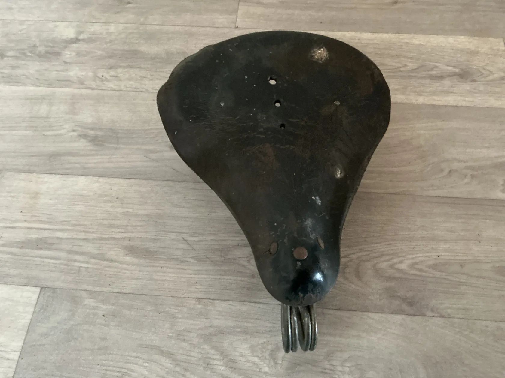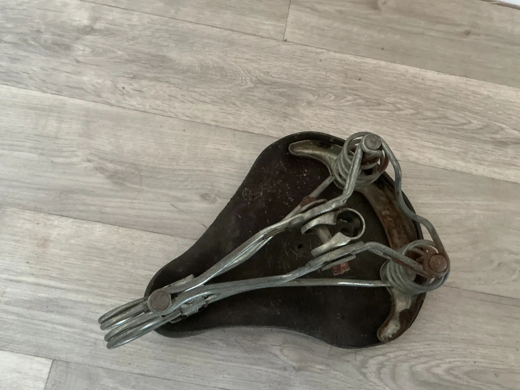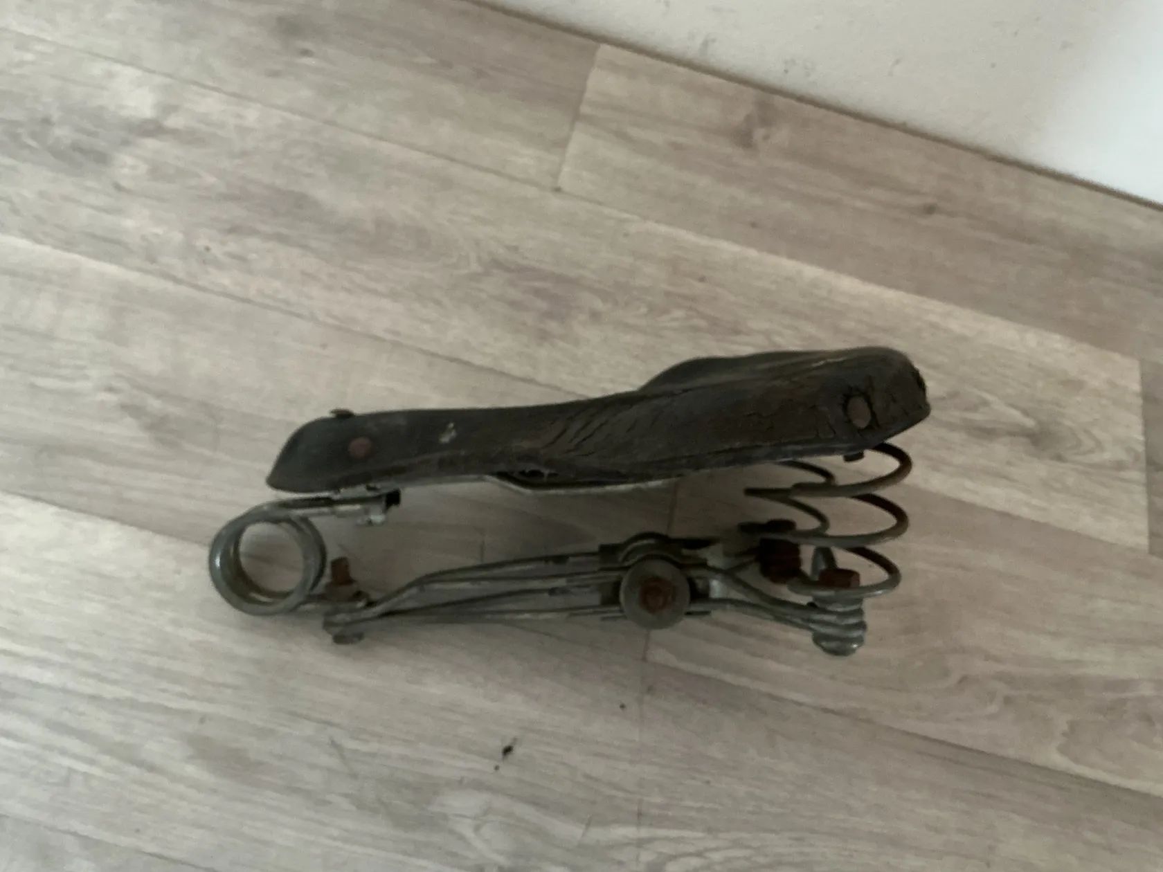 Prodám staré odpružene kožené sedlo na historické kolo viz foto za 300,- Kč (osobní odběr)