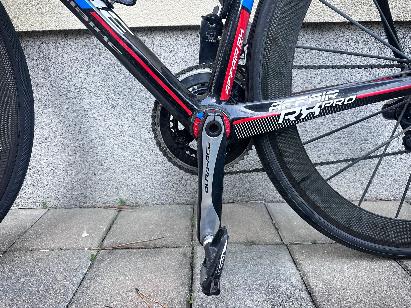 Pohon: Shimano Dura-Ace, kompletní osazení kromě zadní přehazovačky (úplně nová elektrická Ultegra Di2 – přesné a rychlé řazení )