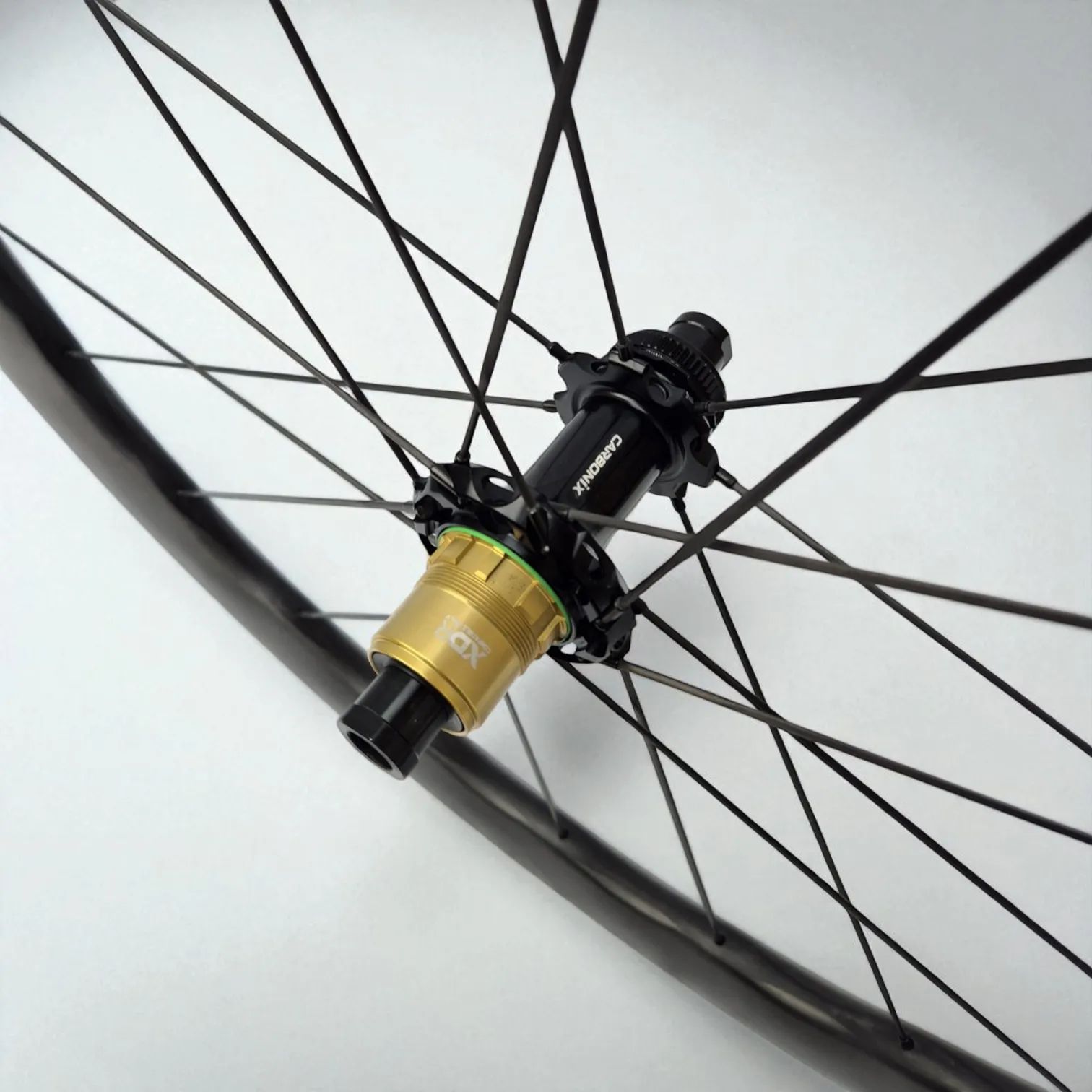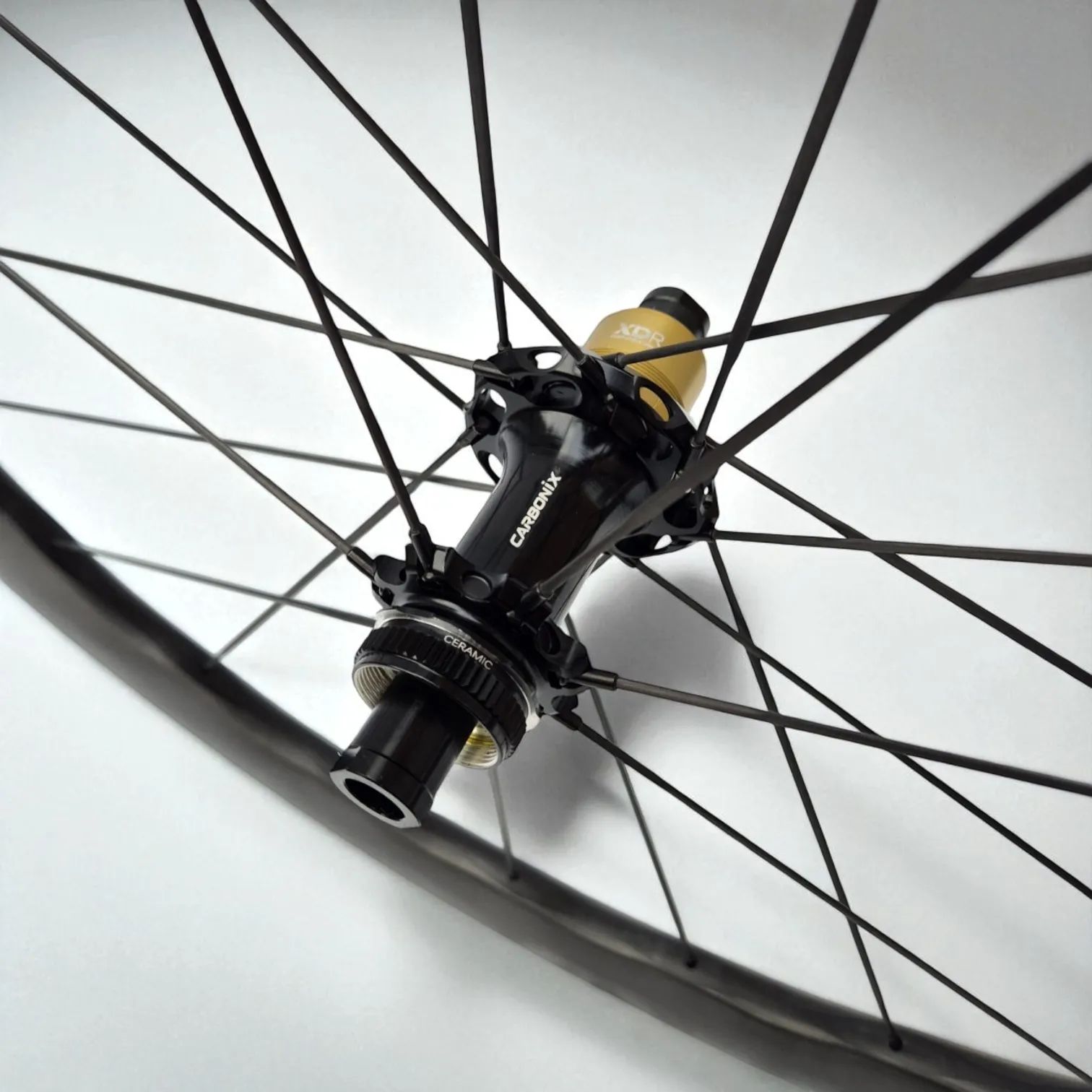 MAXIMÁLNÍ EFEKTIVITA: Kvalitní středy kol Carbonix CS67 s keramickými ložisky a 36T Ratchet systémem zaručují minimální tření a okamžitý přenos síly do pedálů. Kompatibilní s diskovými brzdami Center Lock (pro osy 100 mm / 142 mm) s volbou ořechu Shimano 11/12 speed nebo Sram XDR 12 speed.