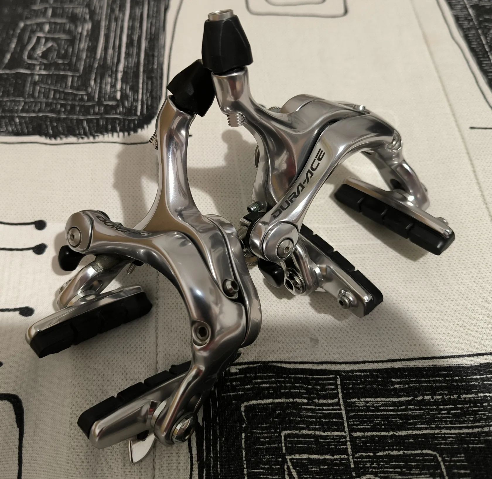 Silniční brzdy Shimano Dura-Ace řady 7800 v top stavu nového kusu. Origo špalky 90% , naprosto bez oděrek. Z časovkářského kola. Osobně možno i v práci Praha 8 nebo zaslání s platbou předem.