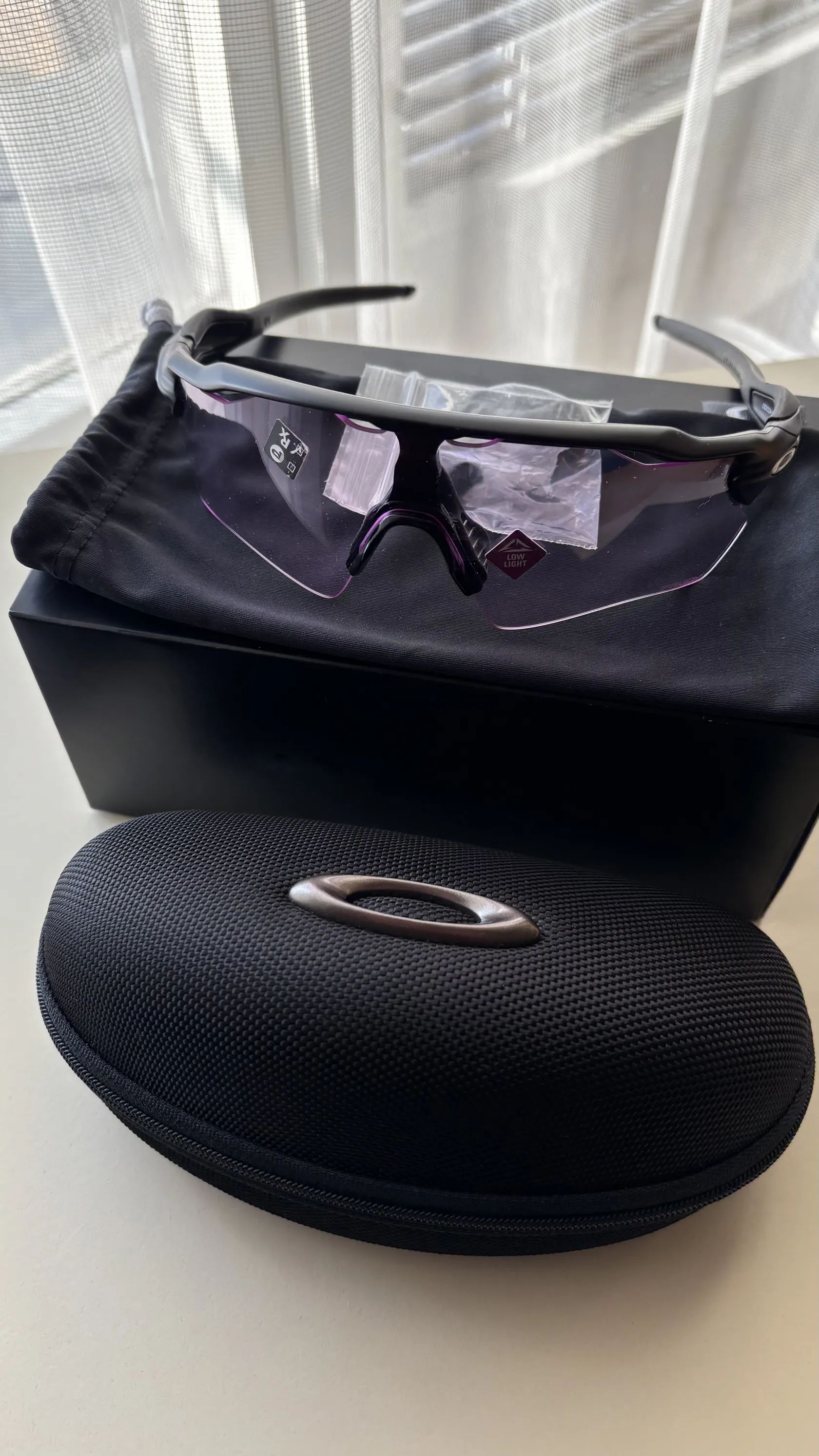 Dobrý den, nabízím k prodeji ,nové nepoužité nenošené originální brýle Oakley Radar Ev Path. Rámeček matt black, skla Prizm Low Light. Skla krásně zvýrazňují,hlavně ve zhoršených poďmínkách ideální při zatažené obloze pod mrakem.Což je teď primárně furt... Brýle nemají žádné vady ani poškození skla mají ještě orig.polepy. Kompletní balení orig. papírová krabička, pevný orig. obal, sáček na brýle, orig. náhradní nosník.