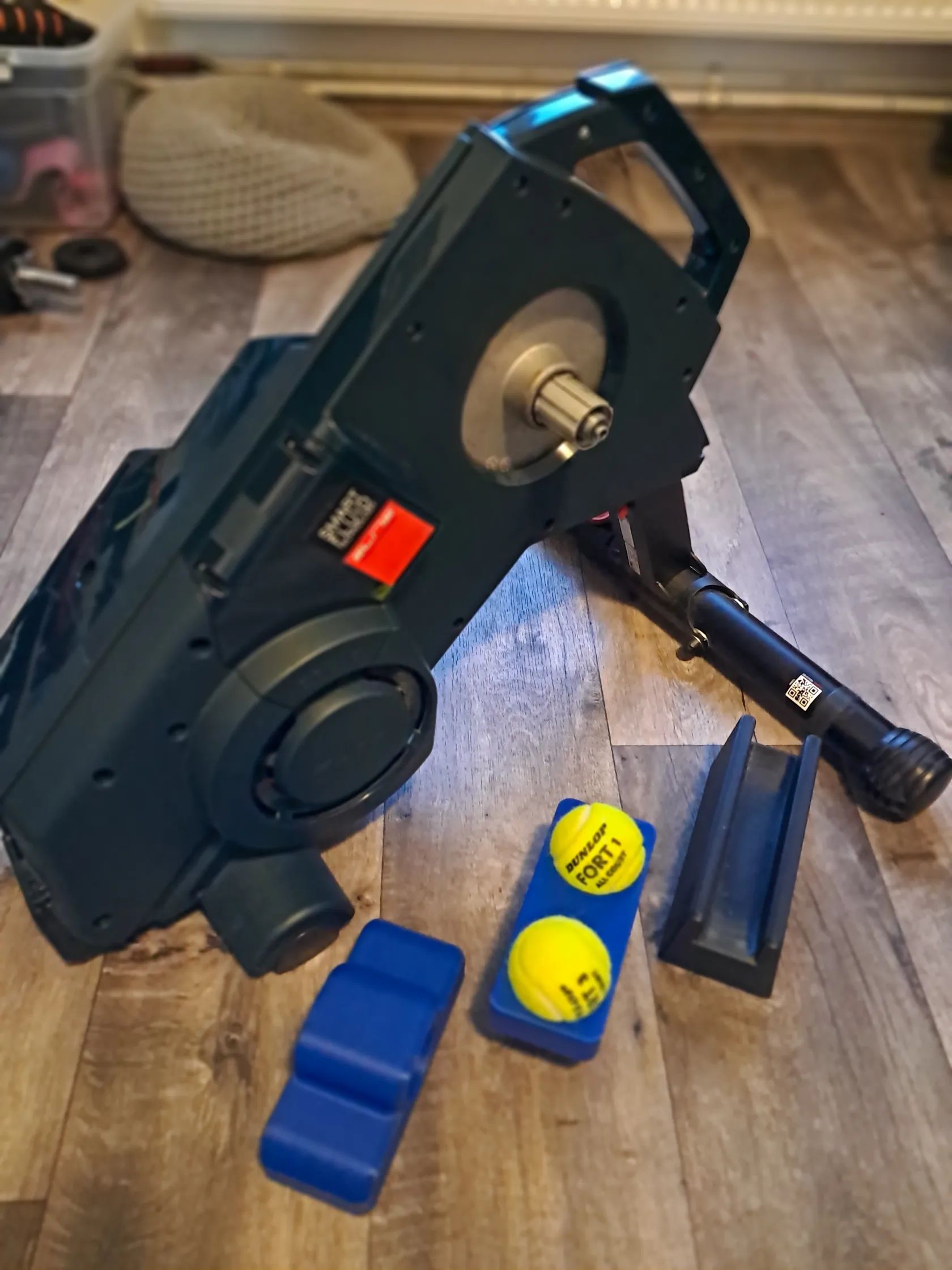 Přidávám také tištěné bloky pro přední kolo a přední nohu trenažeru, pro postavení na tenisáky (trenažer má v zadní čísti otvor, kam tenisák také pasuje). Trenažér na tenisácích zpříjemňuje jízdu. Jízda je reálnější. Kolo není tak statické.