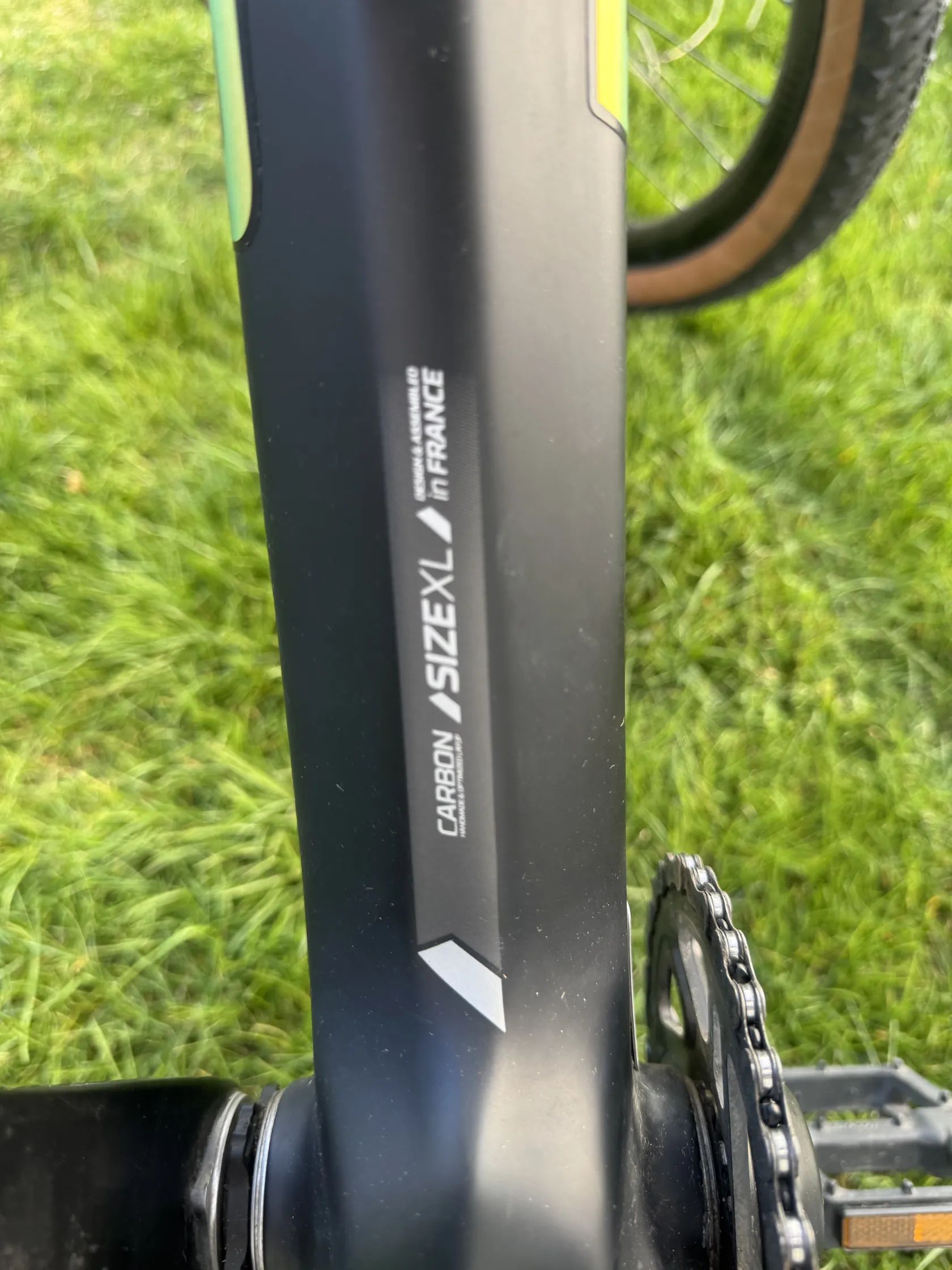 Rám z karbonu, nízká hmotnost cca 9,9 kg – vhodné pro rychlou jízdu a výjezdy