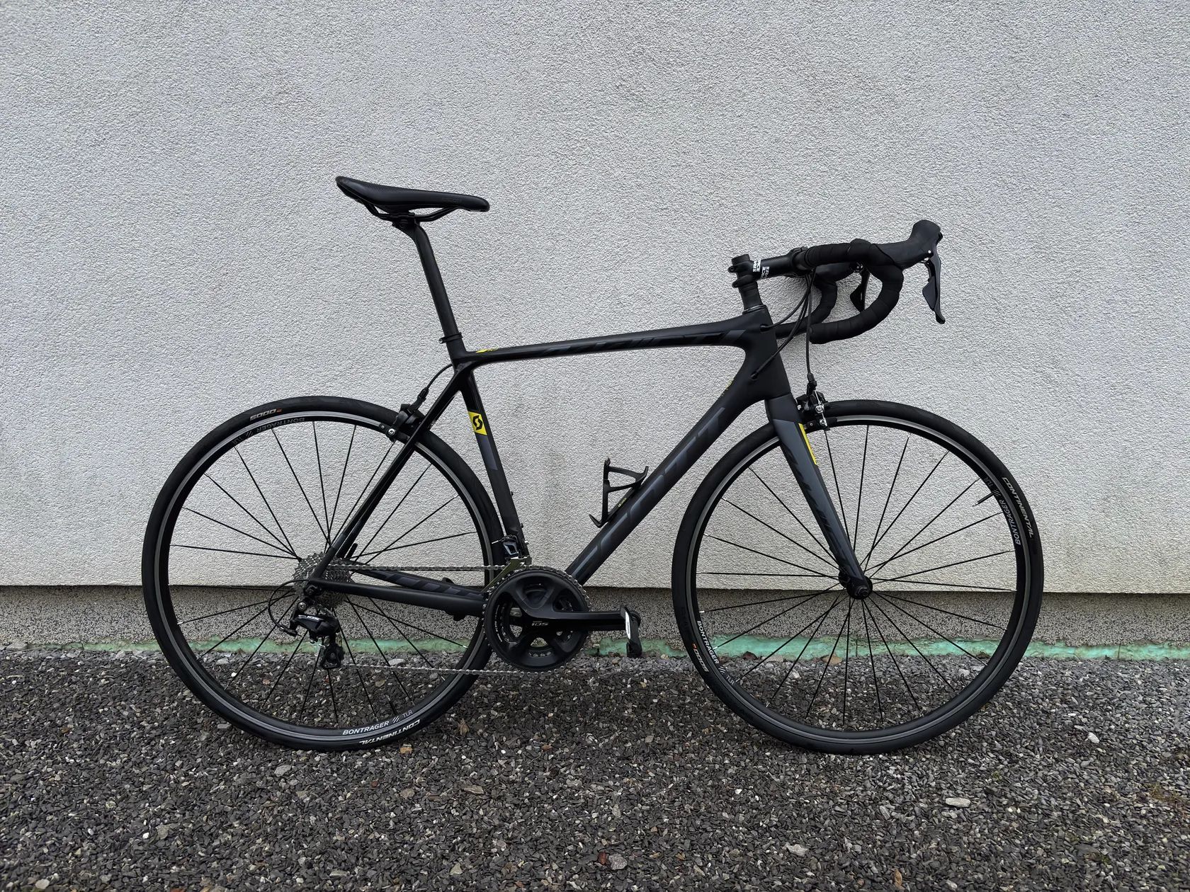 Prodám silniční kolo značky Scott model addict 10. Minulý rok na jaře jsem koupil nový nepoužitý rám a dal na něj povětšinou nové komponenty. Jediné co nové nebylo jsou záplety. Na kole není jediné škrábnutí ani závada. Najel jsem zhruba 500-600km, ale bohužel je mi trochu malé, proto ho posílám dál.