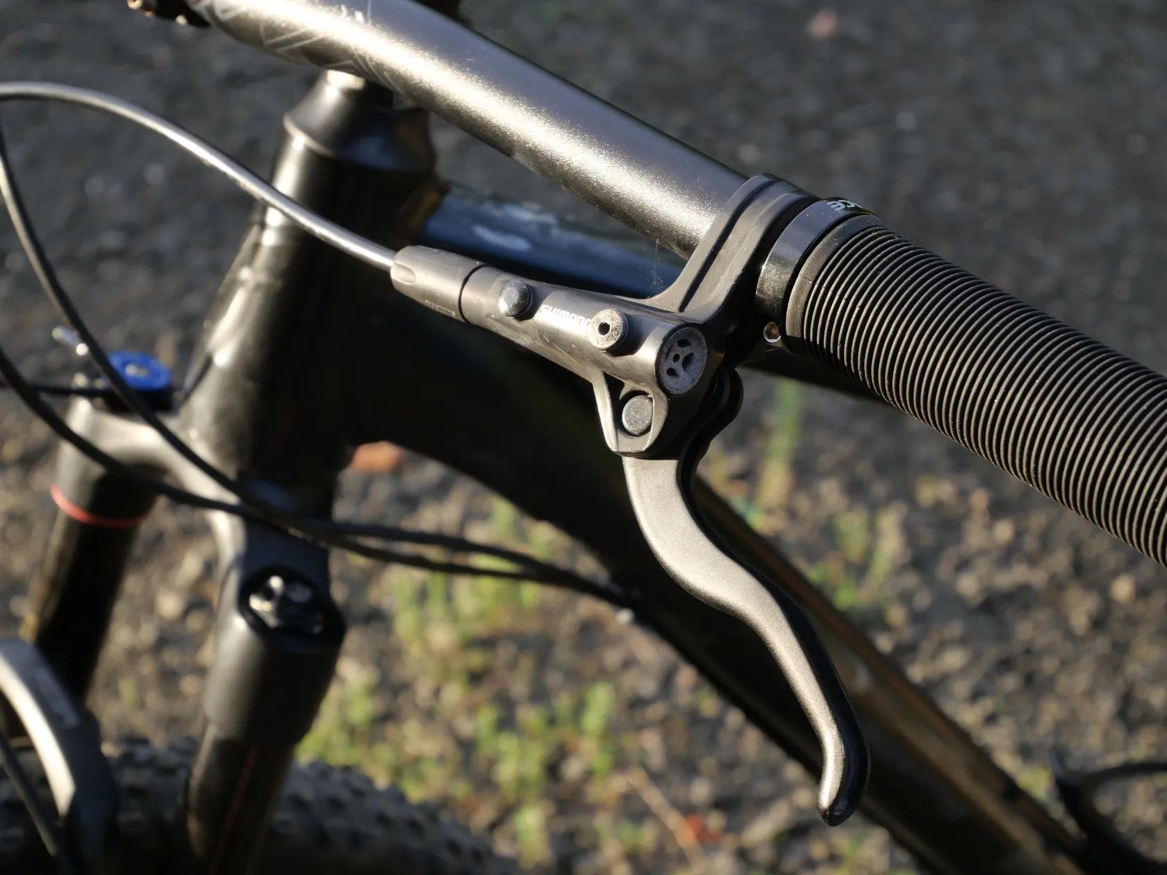 • Hydraulické brzdy Shimano řady MT400. Pro maximální účinek jsem osadil kotouče 203 mm vpředu a 180 mm vzadu. Kolo má díky nim brutální brzdný výkon.