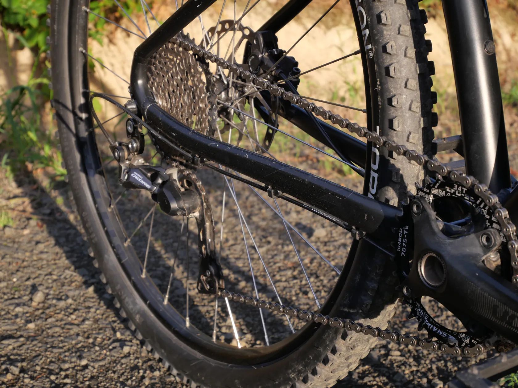 • Pohon 1x10: Přehazovačka a řazení Shimano Deore. Vpředu osazen oválný převodník pro efektivnější šlapání v terénu.