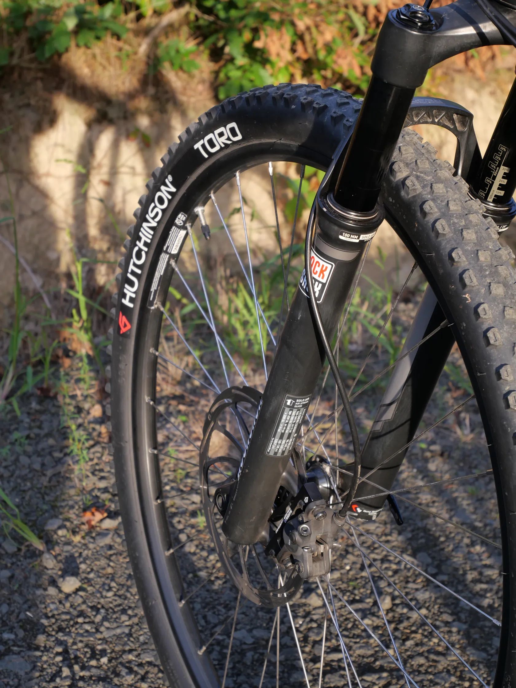 • Vzduchová vidlice RockShox Reba, zdvih 100 mm. Lehká vidlice se zamykáním z řídítek. Po technické stránce funguje výborně.