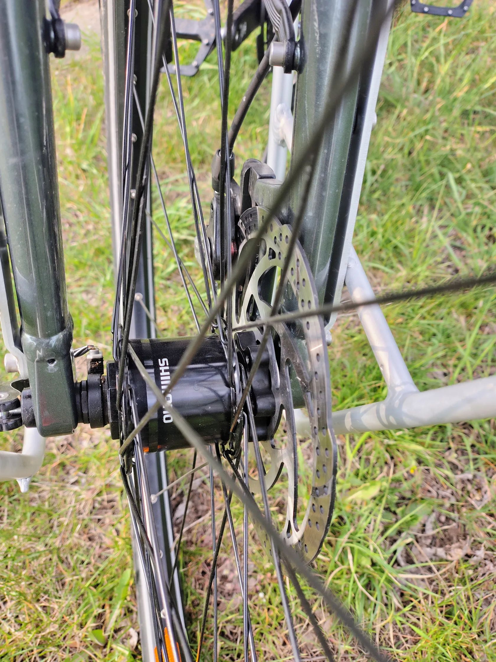 Dynamo v náboji + přední a zadní světlo napájené z dynama – vhodné pro dlouhé cesty bez řešení baterií